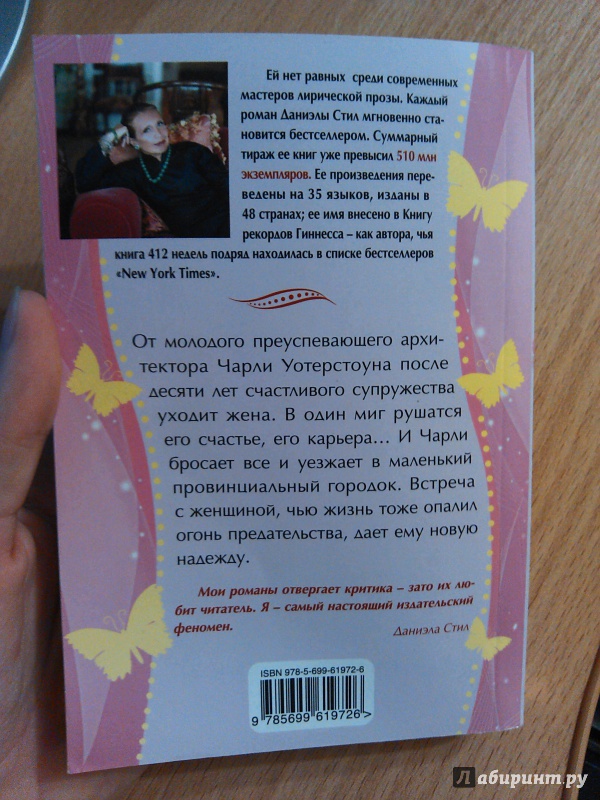 Объем, стр. 416 ISBN 978-5-699-61972-6 Автор Стил Даниэла, Гришечкин Владимир Александрович Переводчик Гришечкин Владимир Александрович Серия Романтическое настроение Минимальный возраст 16+ Год издания книги 2014 Тип обложки Мягкий переплет Иллюстрации Без иллюстраций Вес, г 182г Размеры 165х113х16 мм - Отзывы