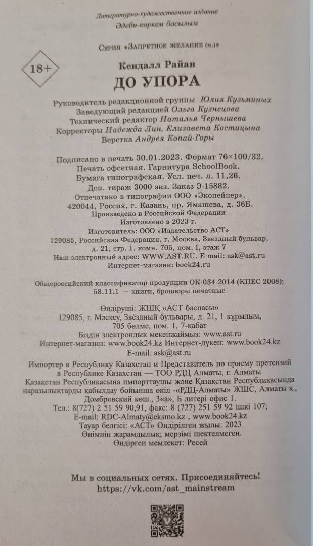 Объем, стр. 256 ISBN 978-5-17-149381-3 Автор Райан Кендалл, Болдырева Н. Переводчик Болдырева Н. Серия Запретное желание Язык Русский Минимальный возраст 18+ Год издания книги 2022 Тип обложки Мягкий переплет Иллюстрации Без иллюстраций Вес, г 134г Размеры 180х116х15 мм - Отзывы