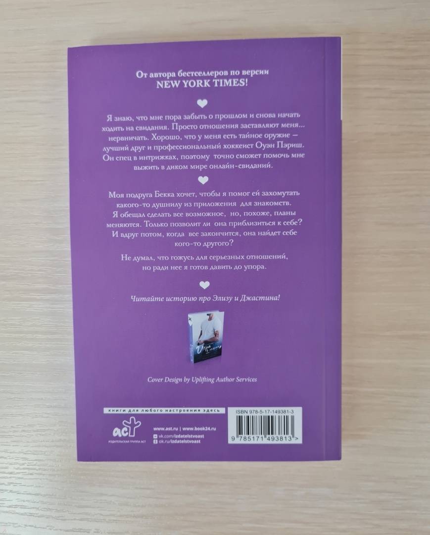 ОписаниеЯ знаю, что мне пора забыть о прошлом и снова начать ходить на свидания. Просто отношения заставляют меня… нервничать. Хорошо, что у меня есть тайное оружие - лучший друг и профессиональный хоккеист Оуэн Пэрриш. Он спец в интрижках, поэтому точно сможет помочь мне выжить в диком мире онлайн-свиданий.Моя подруга Бекка хочет, чтобы я помог ей захомутать какого-то душнилу из приложения для знакомств. Я обещал сделать все возможное, но, похоже, планы меняются. Только позволит ли она приблизиться к себе? И вдруг потом, когда все закончится, она найдет себе кого-то другого?Не думал, что гожусь для серьезных отношений, но ради нее я готов давить до упора.Я знаю, что мне пора забыть о прошлом и снова начать ходить на свидания. Просто отношения заставляют меня… нервничать. Хорошо, что у меня есть тайное оружие - лучший друг и профессиональный хоккеист Оуэн Пэрриш. Он спец в интрижках, поэтому точно сможет помочь мне выжить в диком мире онлайн-свиданий.Моя подруга Бекка хочет, чтобы я помог ей захомутать какого-то душнилу из приложения для знакомств. Я обещал сделать все возможное, но, похоже, планы меняются. Только позволит ли она приблизиться к себе? И вдруг потом, когда все закончится, она найдет себе кого-то другого?Не думал, что гожусь для серьезных отношений, но ради нее я готов давить до упора.