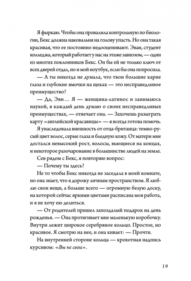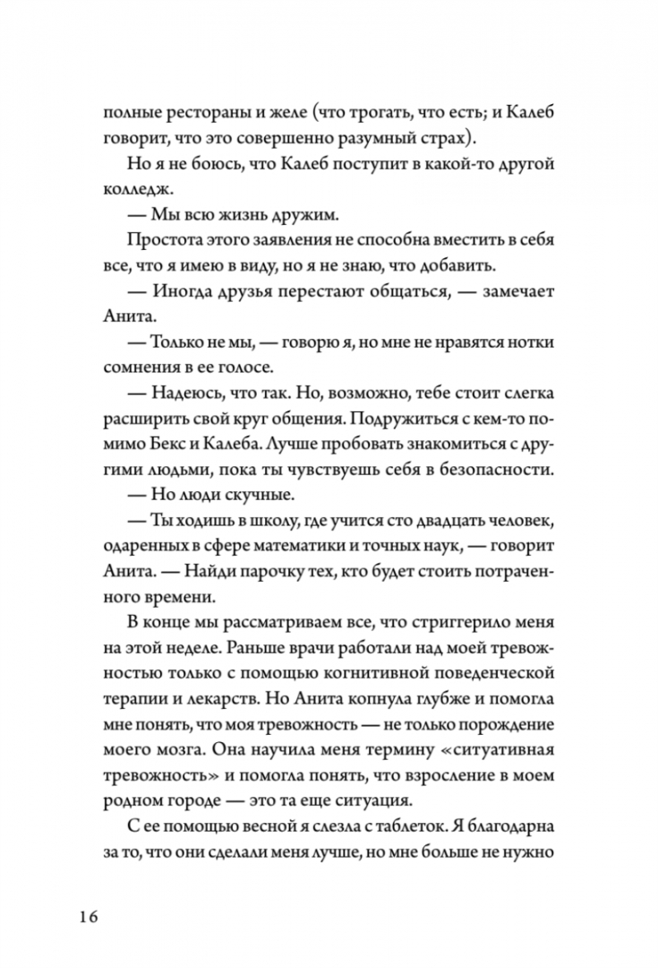 ОписаниеДано: Эви, гений математики и обладательница тревожного расстройства; Калеб, будущий разработчик и лучший друг Эви;Лео, новичок и изобретатель "прелестных" решений;Мило, неизвестное значение.Вопрос.Что будет, если в одном уравнении окажутся Эви, с детства влюбленный (безответно ли?) в лучшую подругу Калеб и Лео, оценки которого упали из-за того, как Эви прикусывает губу? А если появится некто третий - загадочный друг по переписке? Жизненные задачи со звездочкой, сложности общения с гиперопекающей мамой, сеансы с психологом, первые отношения и сложный выбор между дружбой и любовью - почему все происходит именно так и как во всем этом разобраться?Решение. См. с. 320.Дано: Эви, гений математики и обладательница тревожного расстройства; Калеб, будущий разработчик и лучший друг Эви;Лео, новичок и изобретатель "прелестных" решений;Мило, неизвестное значение.Вопрос.Что будет, если в одном уравнении окажутся Эви, с детства влюбленный (безответно ли?) в лучшую подругу Калеб и Лео, оценки которого упали из-за того, как Эви прикусывает губу? А если появится некто третий - загадочный друг по переписке? Жизненные задачи со звездочкой, сложности общения с гиперопекающей мамой, сеансы с психологом, первые отношения и сложный выбор между дружбой и любовью - почему все происходит именно так и как во всем этом разобраться?Решение. См. с. 320.