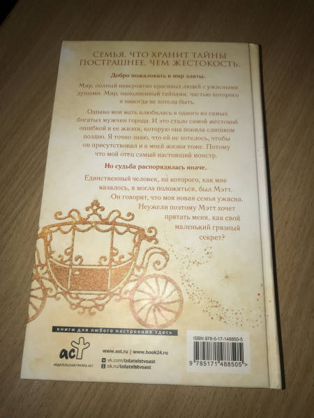 ОписаниеДобро пожаловать в мир элиты.Мир, полный невероятно красивых людей с ужасными душами. Мир, наполненный тайнами, частью которого я никогда не хотела быть.Однако моя мать влюбилась в одного из самых богатых мужчин города. И это стало самой жестокой ошибкой в ее жизни, которую она поняла слишком поздно. Я точно знаю, что ей не хотелось, чтобы он присутствовал и в моей жизни тоже. Потому что мой отец самый настоящий монстр.Но судьба распорядилась иначе.Единственный человек, на которого, как мне казалось, я могла положиться, был Мэтт. Он говорит, что моя новая семья ужасна. Неужели поэтому Мэтт хочет прятать меня, как свой маленький грязный секрет?Добро пожаловать в мир элиты.Мир, полный невероятно красивых людей с ужасными душами. Мир, наполненный тайнами, частью которого я никогда не хотела быть.Однако моя мать влюбилась в одного из самых богатых мужчин города. И это стало самой жестокой ошибкой в ее жизни, которую она поняла слишком поздно. Я точно знаю, что ей не хотелось, чтобы он присутствовал и в моей жизни тоже. Потому что мой отец самый настоящий монстр.Но судьба распорядилась иначе.Единственный человек, на которого, как мне казалось, я могла положиться, был Мэтт. Он говорит, что моя новая семья ужасна. Неужели поэтому Мэтт хочет прятать меня, как свой маленький грязный секрет?