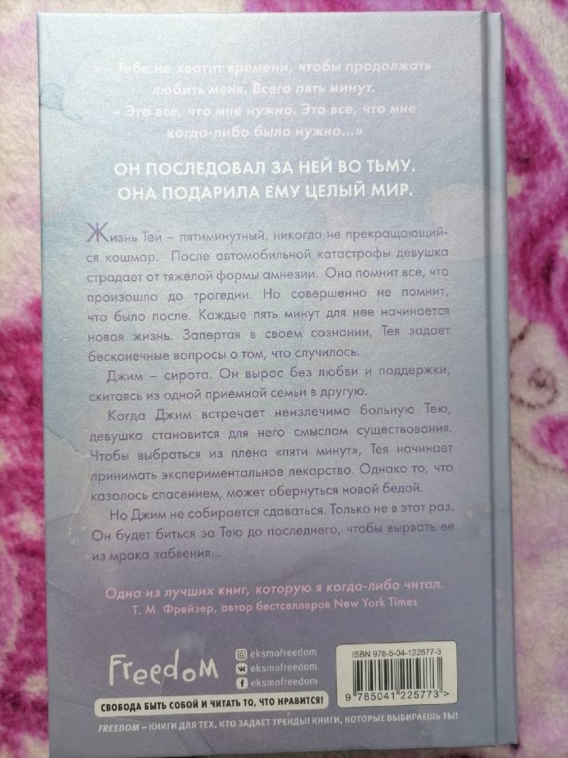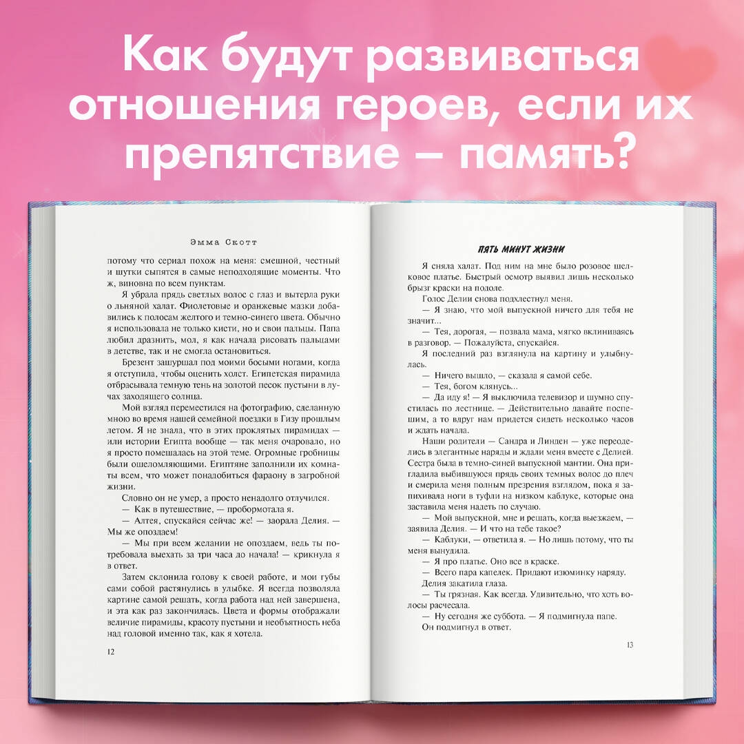 ОписаниеИнтригующий бестселлер от знаменитой американской писательницы любовных романов Эммы Скотт. История о девушке, чья жизнь превратилась в пятиминутный, никогда не прекращающийся кошмар. В романе рассказывается о том, как Тея пытается жить с особой формой амнезии, которую получила вследствие страшной аварии. Она помнит все мелочи, произошедшие до трагедии, но не помнит ничего после нее. Во время этой борьбы со своим сознанием она встречает Джима. Он - сирота, вырос в одиночестве, так и не испытав любви и заботы. Встретив Тею, Джим находит смысл жизни в том, чтобы ей помочь, особенно теперь, когда девушка решилась на экспериментальное лекарство. Как будут развиваться отношения героев, если их препятствие - память? Сможет ли Тея побороть свою тяжелую болезнь? Читайте роман и узнайте, удастся ли Джиму вырвать героиню из мрака забвения! Книга, написанная в лучших традициях сентиментальной прозы Эммы Скотт. По-настоящему чувственный роман, от которого разрывается сердце!Интригующий бестселлер от знаменитой американской писательницы любовных романов Эммы Скотт. История о девушке, чья жизнь превратилась в пятиминутный, никогда не прекращающийся кошмар. В романе рассказывается о том, как Тея пытается жить с особой формой амнезии, которую получила вследствие страшной аварии. Она помнит все мелочи, произошедшие до трагедии, но не помнит ничего после нее. Во время этой борьбы со своим сознанием она встречает Джима. Он - сирота, вырос в одиночестве, так и не испытав любви и заботы. Встретив Тею, Джим находит смысл жизни в том, чтобы ей помочь, особенно теперь, когда девушка решилась на экспериментальное лекарство. Как будут развиваться отношения героев, если их препятствие - память? Сможет ли Тея побороть свою тяжелую болезнь? Читайте роман и узнайте, удастся ли Джиму вырвать героиню из мрака забвения! Книга, написанная в лучших традициях сентиментальной прозы Эммы Скотт. По-настоящему чувственный роман, от которого разрывается сердце!