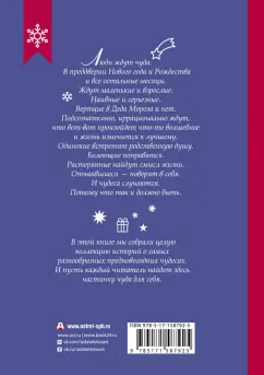 ОписаниеЛюди ждут чуда. В преддверии Нового года и Рождества и все остальные месяцы. Ждут маленькие и взрослые. Наивные и серьезные. Верящие в Деда Мороза и нет.Подсознательно, иррационально ждут, что вот-вот произойдет что-то волшебное и жизнь изменится к лучшему.Одинокие встретят родственную душу. Болеющие поправятся. Растерянные найдут смысл жизни. Отчаявшиеся — поверят в себя.И чудеса случаются. Потому что так и должно быть.В этой книге мы собрали целую коллекцию историй о самых разнообразных предновогодних чудесах. И пусть каждый читатель найдет здесь частичку чуда для себя.Люди ждут чуда. В преддверии Нового года и Рождества и все остальные месяцы. Ждут маленькие и взрослые. Наивные и серьезные. Верящие в Деда Мороза и нет.Подсознательно, иррационально ждут, что вот-вот произойдет что-то волшебное и жизнь изменится к лучшему.Одинокие встретят родственную душу. Болеющие поправятся. Растерянные найдут смысл жизни. Отчаявшиеся — поверят в себя.И чудеса случаются. Потому что так и должно быть.В этой книге мы собрали целую коллекцию историй о самых разнообразных предновогодних чудесах. И пусть каждый читатель найдет здесь частичку чуда для себя.
