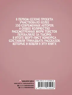 ОписаниеСборник рассказов-финалистов проекта "Твист" — конкурса коротких произведений с неожиданными и блестящими концовками.В первом сезоне проекта участвовало более 350 современных авторов, а общее количество рассмотренных жюри текстов перевалило за тысячу. В итоге шорт-лист конкурса составили тринадцать рассказов, которые и вошли в эту книгу.Сборник рассказов-финалистов проекта "Твист" — конкурса коротких произведений с неожиданными и блестящими концовками.В первом сезоне проекта участвовало более 350 современных авторов, а общее количество рассмотренных жюри текстов перевалило за тысячу. В итоге шорт-лист конкурса составили тринадцать рассказов, которые и вошли в эту книгу.