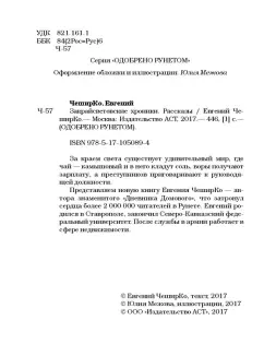 --Евгений Чеширко: Закрайсветовские хроникиРусская классическая и современная литератураЗарубежная художественная литератураРусская художественная литератураФэнтезиДраматургияПоэзияПриключенияФантастикаЭпос и фольклорКлассическая прозаАфоризмыИсторическая прозаДетективыБасниСентиментальная прозаОтечественный боевикСовременная прозаМолодежная литератураЗарубежная классическая и современная литература
