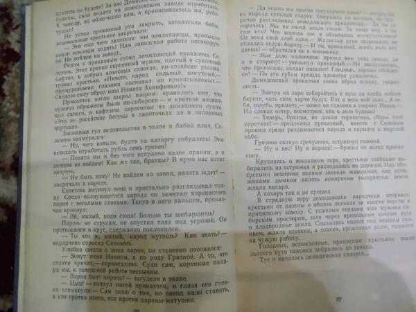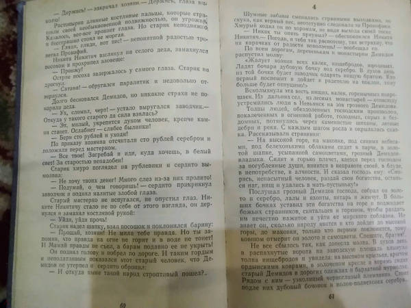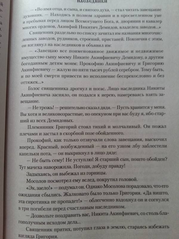 Описание"Каменный Пояс" - эпическое полотно, охватывающее период русской действительности от конца XVII века до 70-х годов XIX века. И хотя стержнем повествования служит история рода уральских горнозаводчиков Демидовых - от сметливого кузнеца Никиты, зачинателя "дела", до немощного, развращенного роскошью Анатолия, князя Сан-Донато, завершившего родословную, - главным героем трилогии является талантливый, трудолюбивый русский народ, терпеливый и мятежный.Автор создал целую галерею запоминающихся образов мастеровых людей, зримо предстают и Демидовы, жестокие, властолюбивые, гордые своей силой и властью над человеком."Наследники" - вторая книга трилогии.Подобно деду, тульскому оружейнику Никите Демидову, его внуки в стремлении расширить производство проявляют хозяйственную сметливость и напористость. Бесчеловечно эксплуатируя трудовой народ, они ради наживы совершают преступления, нравственно деградируют. Не в силах терпеть нужду и произвол, рабочие и крепостные демидовских заводов под предводительством Е. Пугачева выступают на борьбу с угнетателями.Свернуть"Каменный Пояс" - эпическое полотно, охватывающее период русской действительности от конца XVII века до 70-х годов XIX века. И хотя стержнем повествования служит история рода уральских горнозаводчиков Демидовых - от сметливого кузнеца Никиты, зачинателя "дела", до немощного, развращенного роскошью Анатолия, князя Сан-Донато, завершившего родословную, - главным героем трилогии является талантливый, трудолюбивый русский народ, терпеливый и мятежный.Автор создал целую галерею запоминающихся образов мастеровых людей, зримо предстают и Демидовы, жестокие, властолюбивые, гордые своей силой и властью над человеком."Наследники" - вторая книга трилогии.Подобно деду, тульскому оружейнику Никите Демидову, его внуки в стремлении расширить производство проявляют хозяйственную сметливость и напористость. Бесчеловечно эксплуатируя трудовой народ, они ради наживы совершают преступления, нравственно деградируют. Не в силах терпеть нужду и произвол, рабочие и крепостные демидовских заводов под предводительством Е. Пугачева выступают на борьбу с угнетателями.СвернутьСвернуть