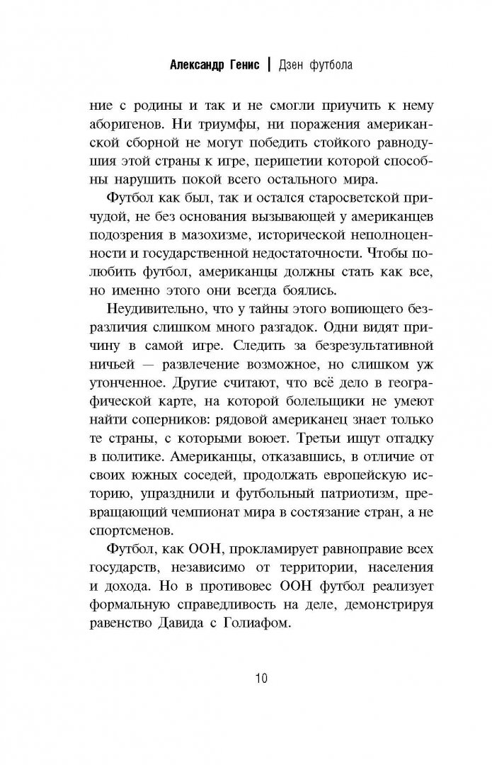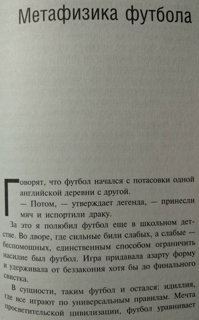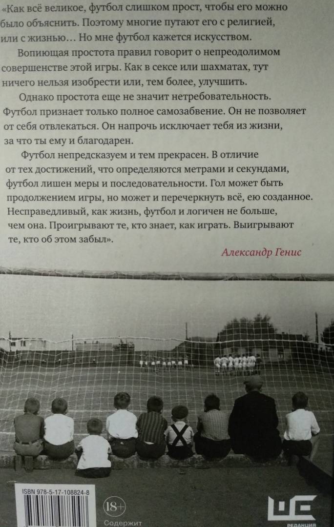 ОписаниеВ сборник короткой прозы о футболе - мемуарной и художественной - вошли тексты Александра Гениса, Евгения Водолазкина, Василия Уткина, Андрея Рубанова, Владимира Стогниенко, Кирилла Набутова, Александра Терехова, Дмитрия Данилова, Александра Нилина, Дениса Романцова, Виктора Шендеровича, Александра Секацкого, Ольги Брейнингер, Сергея Самсонова, Сергея Носова, Ираклия Квирикадзе и других."Как всё великое, футбол слишком прост, чтобы его можно было объяснить. Поэтому многие путают его с религией, или с жизнью… Но мне футбол кажется искусством.Вопиющая простота правил говорит о непреодолимом совершенстве этой игры. Как в сексе или шахматах, тут ничего нельзя изобрести или, тем более, улучшить.Однако простота еще не значит нетребовательность. Футбол признает только полное самозабвение. Он не позволяет от себя отвлекаться. Он напрочь исключает тебя из жизни, за что ты ему и благодарен.Футбол непредсказуем и тем прекрасен. В отличие от тех достижений, что определяются метрами и секундами, футбол лишен меры и последовательности. Гол может быть продолжением игры, но может и перечеркнуть всё, ею созданное. Несправедливый, как жизнь, футбол и логичен не больше, чем она. Проигрывают те, кто знает, как играть. Выигрывают те, кто об этом забыл".Александр ГенисСвернутьВ сборник короткой прозы о футболе - мемуарной и художественной - вошли тексты Александра Гениса, Евгения Водолазкина, Василия Уткина, Андрея Рубанова, Владимира Стогниенко, Кирилла Набутова, Александра Терехова, Дмитрия Данилова, Александра Нилина, Дениса Романцова, Виктора Шендеровича, Александра Секацкого, Ольги Брейнингер, Сергея Самсонова, Сергея Носова, Ираклия Квирикадзе и других."Как всё великое, футбол слишком прост, чтобы его можно было объяснить. Поэтому многие путают его с религией, или с жизнью… Но мне футбол кажется искусством.Вопиющая простота правил говорит о непреодолимом совершенстве этой игры. Как в сексе или шахматах, тут ничего нельзя изобрести или, тем более, улучшить.Однако простота еще не значит нетребовательность. Футбол признает только полное самозабвение. Он не позволяет от себя отвлекаться. Он напрочь исключает тебя из жизни, за что ты ему и благодарен.Футбол непредсказуем и тем прекрасен. В отличие от тех достижений, что определяются метрами и секундами, футбол лишен меры и последовательности. Гол может быть продолжением игры, но может и перечеркнуть всё, ею созданное. Несправедливый, как жизнь, футбол и логичен не больше, чем она. Проигрывают те, кто знает, как играть. Выигрывают те, кто об этом забыл".Александр ГенисСвернутьСвернуть