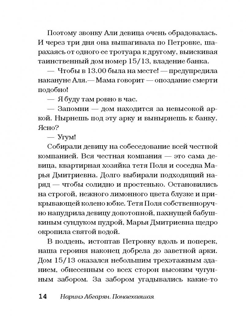 --Наринэ Абгарян: ПонаехавшаяРусская классическая и современная литератураЗарубежная художественная литератураРусская художественная литератураФэнтезиДраматургияПоэзияПриключенияФантастикаЭпос и фольклорКлассическая прозаАфоризмыИсторическая прозаДетективыБасниСентиментальная прозаОтечественный боевикСовременная прозаМолодежная литератураЗарубежная классическая и современная литература
