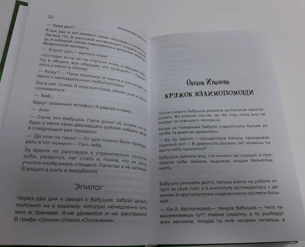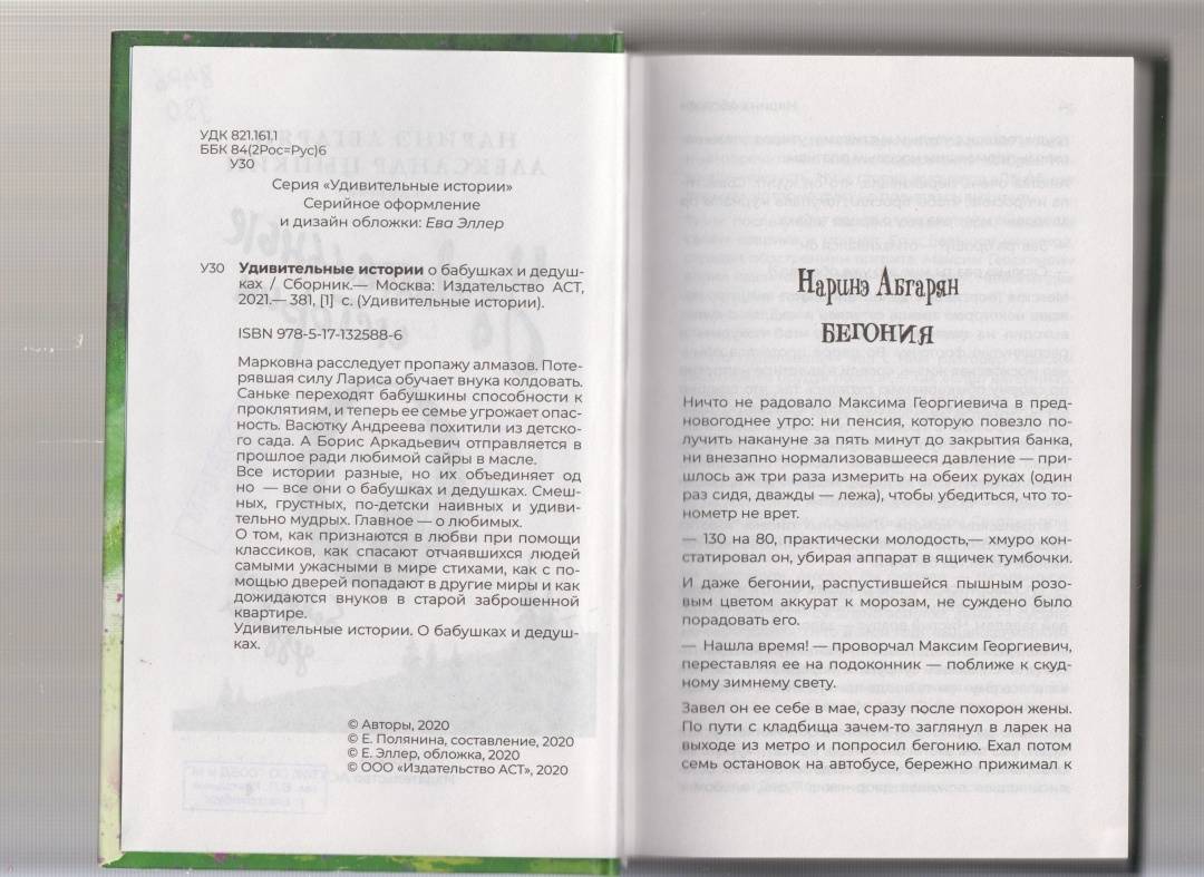 ОписаниеМарковна расследует пропажу алмазов. Потерявшая силу Лариса обучает внука колдовать. Саньке переходят бабушкины способности к проклятиям, и теперь ее семье угрожает опасность. Васютку Андреева похитили из детского сада. А Борис Аркадьевич отправляется в прошлое ради любимой сайры в масле.Все истории разные, но их объединяет одно — все они о бабушках и дедушках. Смешных, грустных, по-детски наивных и удивительно мудрых. Главное — о любимых.О том, как признаются в любви при помощи классиков, как спасают отчаявшихся людей самыми ужасными в мире стихами, как с помощью дверей попадают в другие миры и как дожидаются внуков в старой заброшенной квартире.Удивительные истории. О бабушках и дедушках.Марковна расследует пропажу алмазов. Потерявшая силу Лариса обучает внука колдовать. Саньке переходят бабушкины способности к проклятиям, и теперь ее семье угрожает опасность. Васютку Андреева похитили из детского сада. А Борис Аркадьевич отправляется в прошлое ради любимой сайры в масле.Все истории разные, но их объединяет одно — все они о бабушках и дедушках. Смешных, грустных, по-детски наивных и удивительно мудрых. Главное — о любимых.О том, как признаются в любви при помощи классиков, как спасают отчаявшихся людей самыми ужасными в мире стихами, как с помощью дверей попадают в другие миры и как дожидаются внуков в старой заброшенной квартире.Удивительные истории. О бабушках и дедушках.