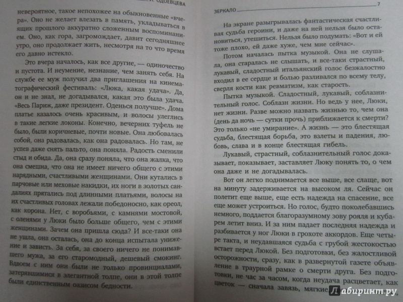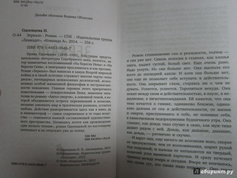 ОписаниеИрина Одоевцева (1895-1990), блестящая представительница литературы Серебряного века, поэтесса, автор знаменитых воспоминаний "На берегах Невы" и "На берегах Сены", в эмиграции прославилась и как прозаик. Роман "Зеркало" был написан в канун Второй мировой войны и в своей эстетике отражает многие черты "века джаза", легендарных межвоенных десятилетий, исполненных особой жизненной философии и экстравагантности поведения. Главная героиня этого призрачного повествования - повзрослевшая Люка, знакомая читателям по роману "Ангел смерти", а основной темой, в которой объединяются острота переживаний и иллюзии, желание завоевать мир и трагическая развязка, остается любовь. Действие разворачивается здесь как в кино, да и кинематограф - самое современное в те годы искусство - становится важной составляющей художественного пространства. Начинаясь почти как произведение "для легкого чтения", роман Одоевцевой по-настоящему затягивает и не отпускает уже до конца.Ирина Одоевцева (1895-1990), блестящая представительница литературы Серебряного века, поэтесса, автор знаменитых воспоминаний "На берегах Невы" и "На берегах Сены", в эмиграции прославилась и как прозаик. Роман "Зеркало" был написан в канун Второй мировой войны и в своей эстетике отражает многие черты "века джаза", легендарных межвоенных десятилетий, исполненных особой жизненной философии и экстравагантности поведения. Главная героиня этого призрачного повествования - повзрослевшая Люка, знакомая читателям по роману "Ангел смерти", а основной темой, в которой объединяются острота переживаний и иллюзии, желание завоевать мир и трагическая развязка, остается любовь. Действие разворачивается здесь как в кино, да и кинематограф - самое современное в те годы искусство - становится важной составляющей художественного пространства. Начинаясь почти как произведение "для легкого чтения", роман Одоевцевой по-настоящему затягивает и не отпускает уже до конца.