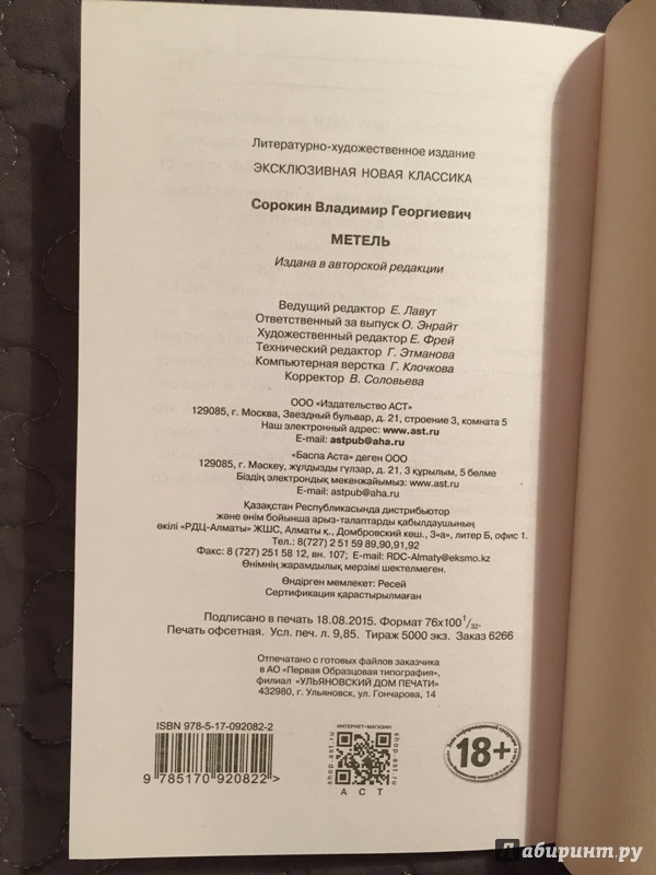Объем, стр. 224 ISBN 978-5-17-092082-2 Автор Сорокин Владимир Георгиевич Серия Эксклюзивная новая классика Минимальный возраст 18+ Год издания книги 2015 Тип обложки Мягкий переплет Иллюстрации Без иллюстраций Вес, г 162г Размеры 180х115х5 мм - Отзывы