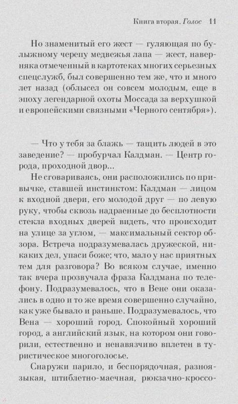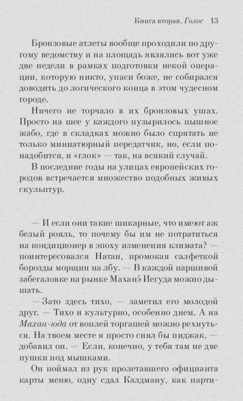 ОписаниеЛеон Этингер - обладатель удивительного голоса и многих иных талантов, последний отпрыск одесского семейства с весьма извилистой и бурной историей. Прежний голосистый мальчик становится оперативником одной из серьезных спецслужб, обзаводится странной кличкой "Кенар руси", ("Русская канарейка"), и со временем - звездой оперной сцены. Но поскольку антитеррористическое подразделение разведки не хочет отпустить бывшего сотрудника, Леон вынужден сочетать карьеру контратенора с тайной и очень опасной "охотой". Эта охота приводит его в Таиланд, где он обнаруживает ответы на некоторые важные вопросы и встречает странную глухую бродяжку с фотокамерой в руках."Голос" - вторая книга трилогии Дины Рубиной "Русская канарейка", семейной саги о "двух потомках одной канарейки", которые встретились вопреки всем вероятиям.Леон Этингер - обладатель удивительного голоса и многих иных талантов, последний отпрыск одесского семейства с весьма извилистой и бурной историей. Прежний голосистый мальчик становится оперативником одной из серьезных спецслужб, обзаводится странной кличкой "Кенар руси", ("Русская канарейка"), и со временем - звездой оперной сцены. Но поскольку антитеррористическое подразделение разведки не хочет отпустить бывшего сотрудника, Леон вынужден сочетать карьеру контратенора с тайной и очень опасной "охотой". Эта охота приводит его в Таиланд, где он обнаруживает ответы на некоторые важные вопросы и встречает странную глухую бродяжку с фотокамерой в руках."Голос" - вторая книга трилогии Дины Рубиной "Русская канарейка", семейной саги о "двух потомках одной канарейки", которые встретились вопреки всем вероятиям.