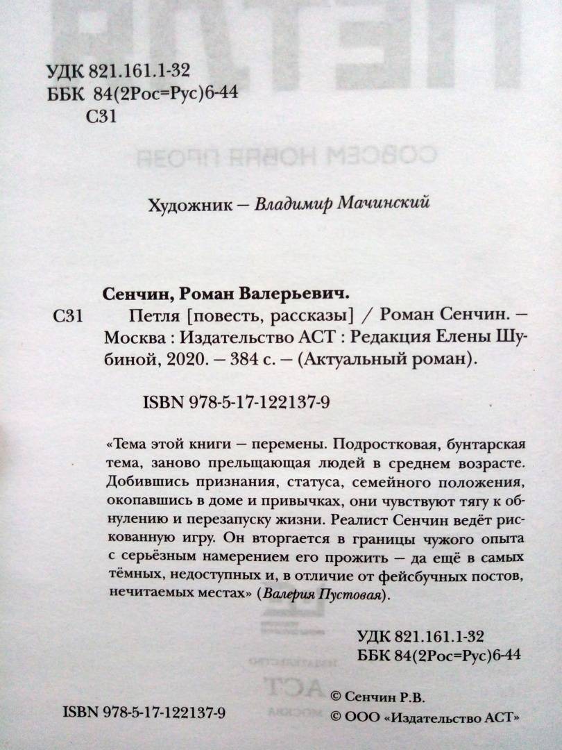--Роман Сенчин: ПетляРусская классическая и современная литератураЗарубежная художественная литератураРусская художественная литератураФэнтезиДраматургияПоэзияПриключенияФантастикаЭпос и фольклорКлассическая прозаАфоризмыИсторическая прозаДетективыБасниСентиментальная прозаОтечественный боевикСовременная прозаМолодежная литератураЗарубежная классическая и современная литература
