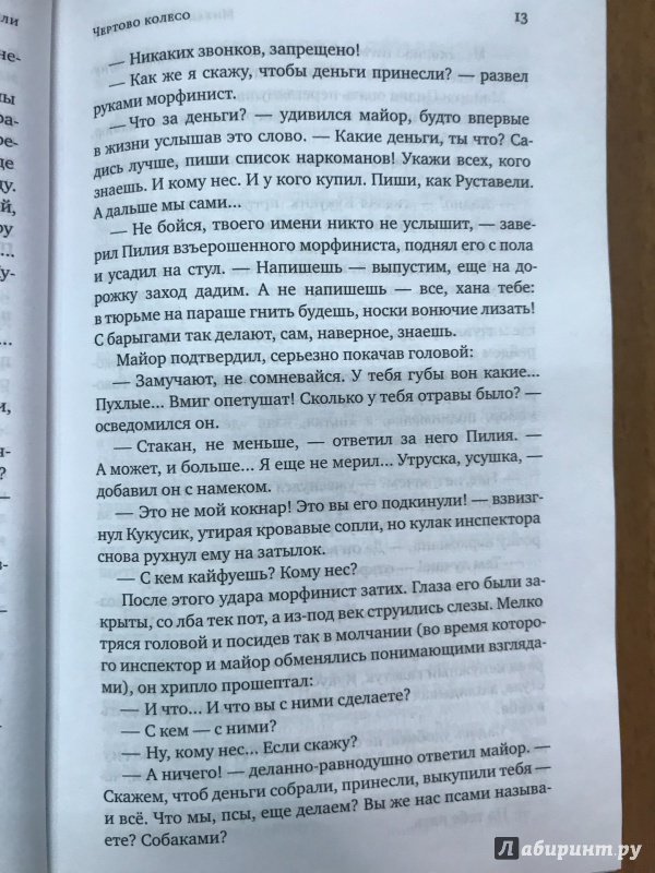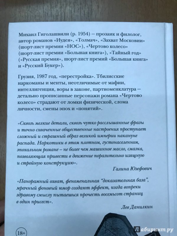 ОписаниеГрузия, 1987 год, "перестройка". Тбилисские наркоманы и менты, неотличимые от мафии, интеллигенция, воры в законе, партноменклатура - детально прописанные персонажи романа "Чертово колесо" страдают от ломки физической, слома личности, смены эпох и "понятий"."Сквозь мелкие детали, сквозь чутко расслышанные фразы и точно схваченные общественные настроения проступает сложный и страшный образ великой империи накануне распада. Наркотики в этом плотном, густонаселенном, эпохальном романе - не более чем машинное масло, смазка, позволяющая привести в движение поразительно изящную и стройную конструкцию".Галина Юзефович"Панорамный охват, феноменальная "доказательная база", мрачный фоновый юмор создают эффект, когда вопреки здравому смыслу пытаешься прочесть восемьсот страниц в один присест".Лев ДанилкинГрузия, 1987 год, "перестройка". Тбилисские наркоманы и менты, неотличимые от мафии, интеллигенция, воры в законе, партноменклатура - детально прописанные персонажи романа "Чертово колесо" страдают от ломки физической, слома личности, смены эпох и "понятий"."Сквозь мелкие детали, сквозь чутко расслышанные фразы и точно схваченные общественные настроения проступает сложный и страшный образ великой империи накануне распада. Наркотики в этом плотном, густонаселенном, эпохальном романе - не более чем машинное масло, смазка, позволяющая привести в движение поразительно изящную и стройную конструкцию".Галина Юзефович"Панорамный охват, феноменальная "доказательная база", мрачный фоновый юмор создают эффект, когда вопреки здравому смыслу пытаешься прочесть восемьсот страниц в один присест".Лев Данилкин