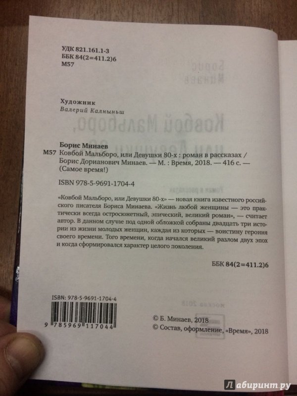 Описание"Ковбой Мальборо, или Девушки 80-х" - новая книга известного российского писателя Бориса Минаева. "Жизнь любой женщины - это практически всегда остросюжетный, эпический, великий роман", - считает автор. В данном случае под одной обложкой собраны двадцать три истории из жизни молодых женщин, каждая из которых - воистину героиня своего времени. Того времени, когда начался великий разлом двух эпох и когда сформировался характер целого поколения.Что: двадцать три личных истории из жизни молодых женщин: по отдельности - про любовь, характеры, житейские неурядицы, а вместе - портрет эпохи.О чем: тонкая, смешная и грустная книга о молодости (даже если она пришлась и не на 80-е) и том, как из случайных и нелепых деталей быта рождается судьба.На той же полке: "История любви" Эрика Сигала, DVD c фильмами "Москва слезам не верит" и "Ирония судьбы".Для кого: читатели книг о любви, вышедшие из юношеского возраста, ценящие не только легкий стиль, но и неспешное, обстоятельное чтение.Свернуть"Ковбой Мальборо, или Девушки 80-х" - новая книга известного российского писателя Бориса Минаева. "Жизнь любой женщины - это практически всегда остросюжетный, эпический, великий роман", - считает автор. В данном случае под одной обложкой собраны двадцать три истории из жизни молодых женщин, каждая из которых - воистину героиня своего времени. Того времени, когда начался великий разлом двух эпох и когда сформировался характер целого поколения.Что: двадцать три личных истории из жизни молодых женщин: по отдельности - про любовь, характеры, житейские неурядицы, а вместе - портрет эпохи.О чем: тонкая, смешная и грустная книга о молодости (даже если она пришлась и не на 80-е) и том, как из случайных и нелепых деталей быта рождается судьба.На той же полке: "История любви" Эрика Сигала, DVD c фильмами "Москва слезам не верит" и "Ирония судьбы".Для кого: читатели книг о любви, вышедшие из юношеского возраста, ценящие не только легкий стиль, но и неспешное, обстоятельное чтение.СвернутьСвернуть