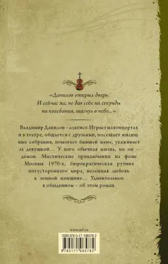 ОписаниеВладимир Данилов - альтист. Играет на концертах и в театре, общается с друзьями, посещает жилищные собрания, помогает бывшей жене, ухаживает за девушкой…У него обычная жизнь, но он - демон. Мистические приключения на фоне Москвы 1970-х, бюрократическая рутина потустороннего мира, неземная любовь к земной женщине… Удивительное в обыденном - об этом роман.Владимир Данилов - альтист. Играет на концертах и в театре, общается с друзьями, посещает жилищные собрания, помогает бывшей жене, ухаживает за девушкой…У него обычная жизнь, но он - демон. Мистические приключения на фоне Москвы 1970-х, бюрократическая рутина потустороннего мира, неземная любовь к земной женщине… Удивительное в обыденном - об этом роман.