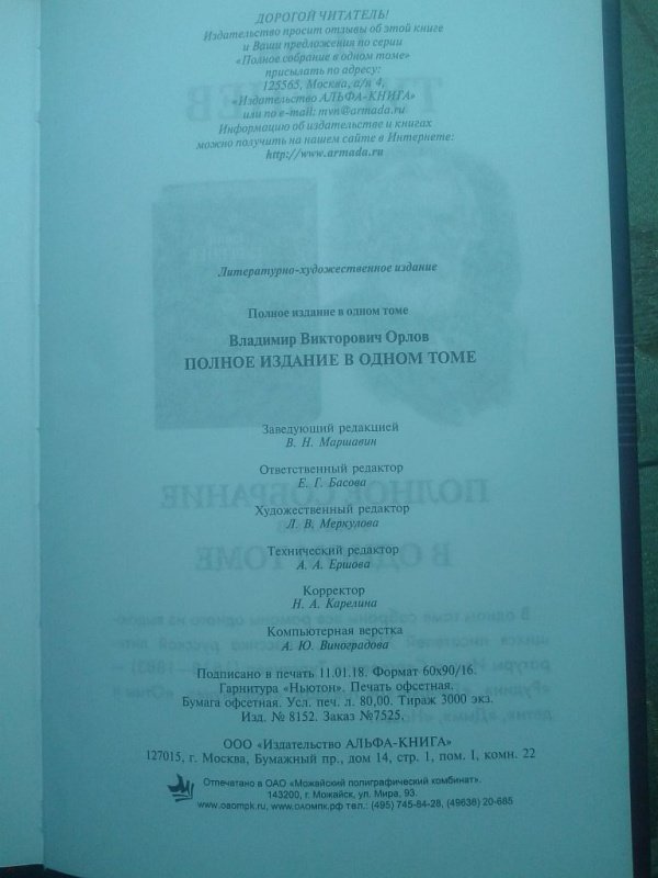 Объем, стр. 1280 ISBN 978-5-9922-2628-7 Автор Орлов Владимир Викторович Серия Полное издание в одном томе Минимальный возраст 16+ Год издания книги 2018 Тип обложки Твердый переплет Иллюстрации Без иллюстраций Вес, г 1218г Размеры 218х150х52 мм - Отзывы