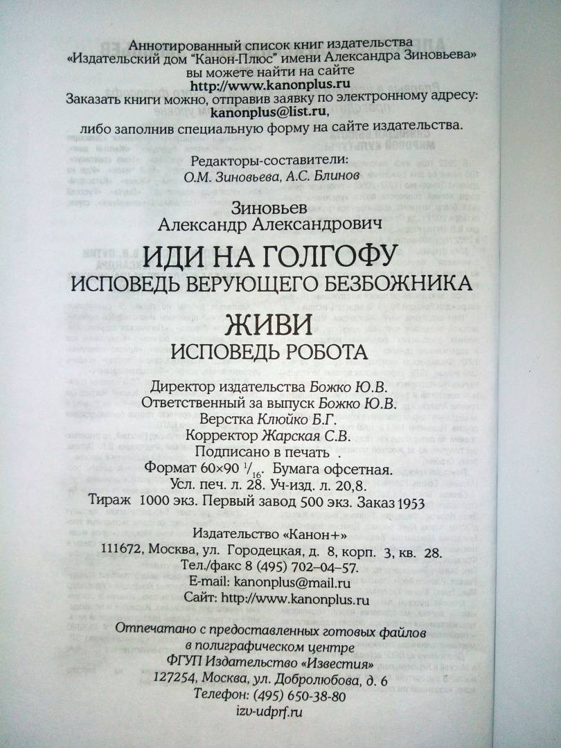 Александр Зиновьев: Иди на Голгофу. Исповедь верующего безбожника. Живи. Исповедь робота