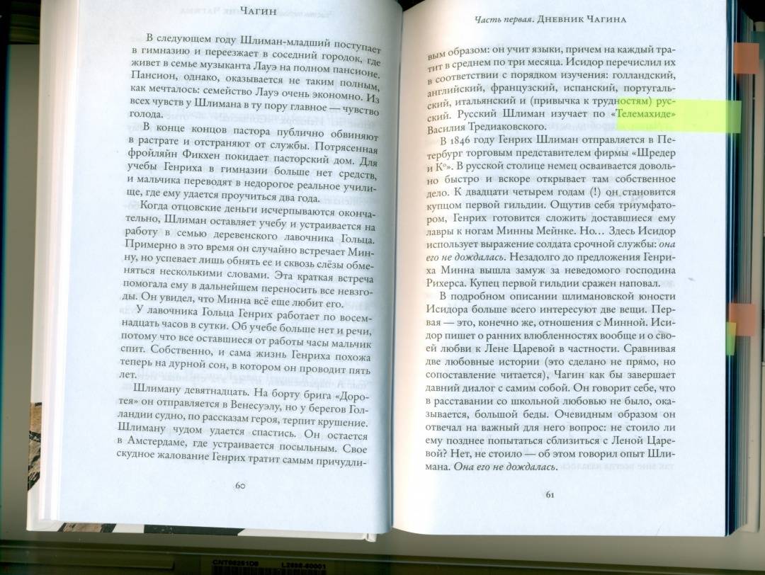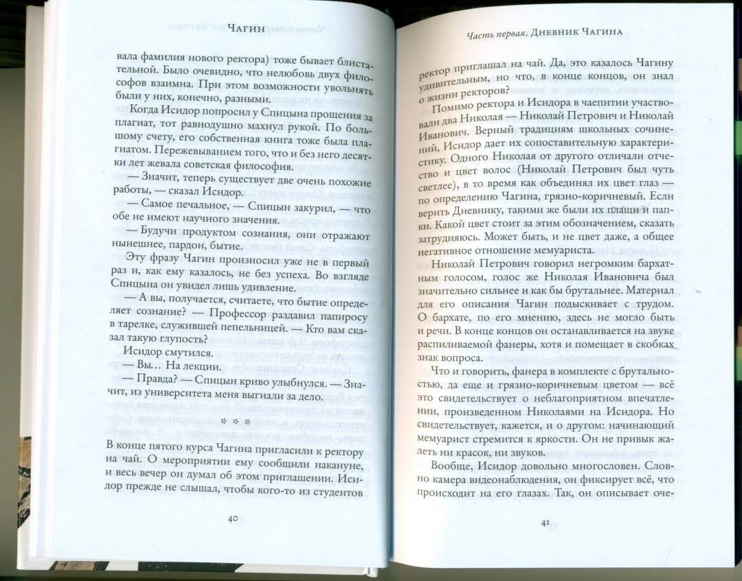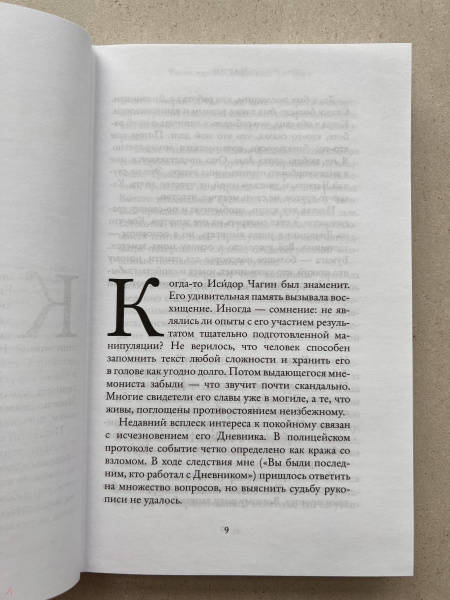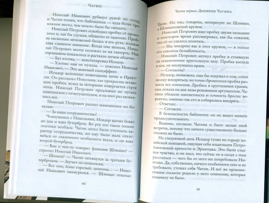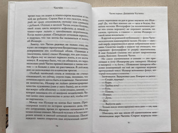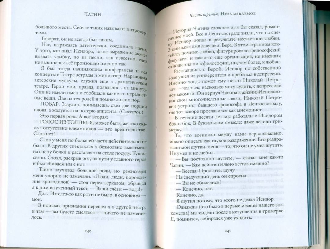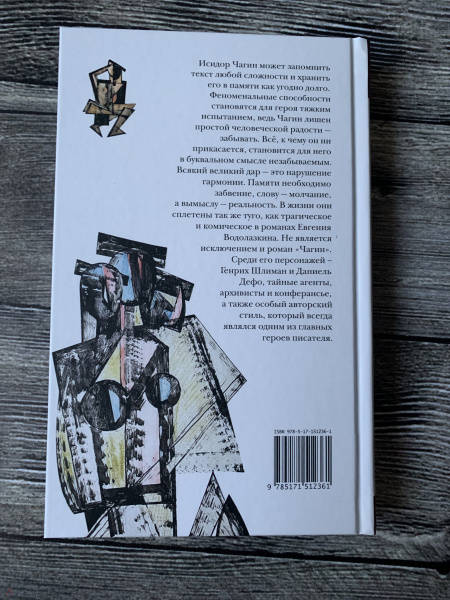 ОписаниеЕвгений Водолазкин - автор романов "Лавр", "Авиатор", "Соловьёв и Ларионов", "Брисбен", "Оправдание Острова", сборников короткой прозы "Идти бестрепетно" и "Инструмент языка", лауреат премий "Большая книга", "Ясная Поляна" и "Книга года". Его книги переведены на многие языки.Исидор Чагин может запомнить текст любой сложности и хранить его в памяти как угодно долго. Феноменальные способности становятся для героя тяжким испытанием, ведь Чагин лишен простой человеческой радости - забывать. Всё, к чему он ни прикасается, становится для него в буквальном смысле незабываемым.Всякий великий дар - это нарушение гармонии. Памяти необходимо забвение, слову - молчание, а вымыслу - реальность. В жизни они сплетены так же туго, как трагическое и комическое в романах Евгения Водолазкина. Не является исключением и роман "Чагин". Среди его персонажей - Генрих Шлиман и Даниель Дефо, тайные агенты, архивисты и конферансье, а также особый авторский стиль - как и всегда, один из главных героев писателя.СвернутьЕвгений Водолазкин - автор романов "Лавр", "Авиатор", "Соловьёв и Ларионов", "Брисбен", "Оправдание Острова", сборников короткой прозы "Идти бестрепетно" и "Инструмент языка", лауреат премий "Большая книга", "Ясная Поляна" и "Книга года". Его книги переведены на многие языки.Исидор Чагин может запомнить текст любой сложности и хранить его в памяти как угодно долго. Феноменальные способности становятся для героя тяжким испытанием, ведь Чагин лишен простой человеческой радости - забывать. Всё, к чему он ни прикасается, становится для него в буквальном смысле незабываемым.Всякий великий дар - это нарушение гармонии. Памяти необходимо забвение, слову - молчание, а вымыслу - реальность. В жизни они сплетены так же туго, как трагическое и комическое в романах Евгения Водолазкина. Не является исключением и роман "Чагин". Среди его персонажей - Генрих Шлиман и Даниель Дефо, тайные агенты, архивисты и конферансье, а также особый авторский стиль - как и всегда, один из главных героев писателя.СвернутьСвернуть