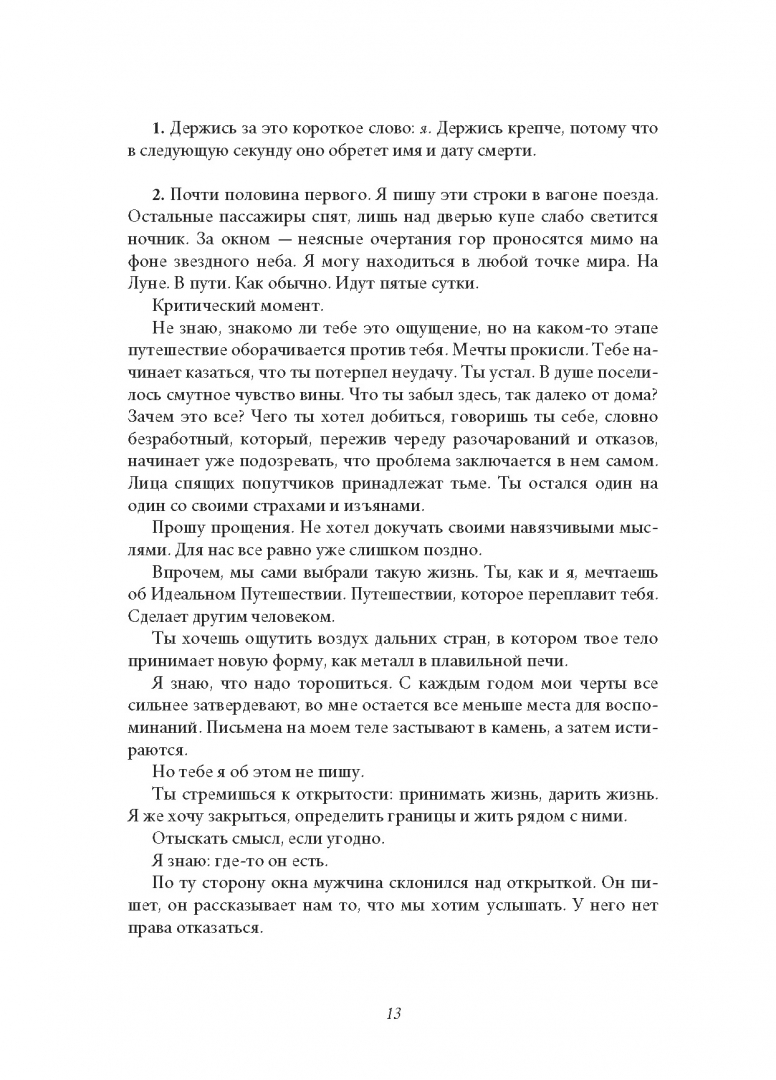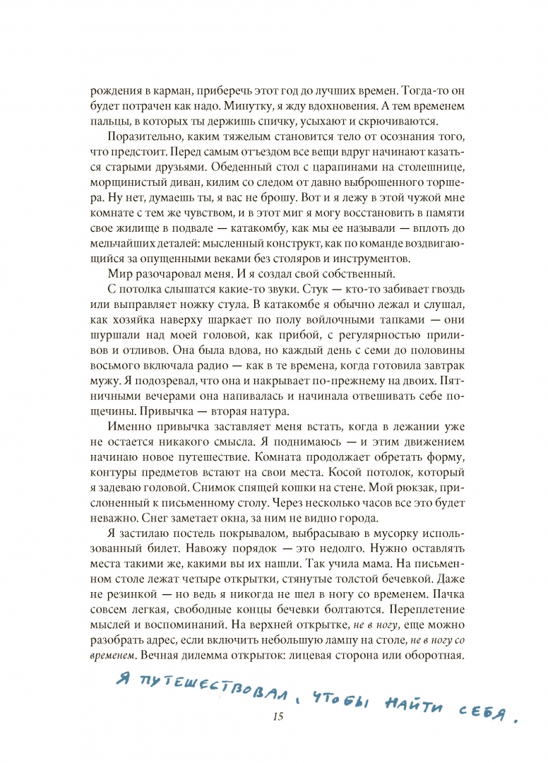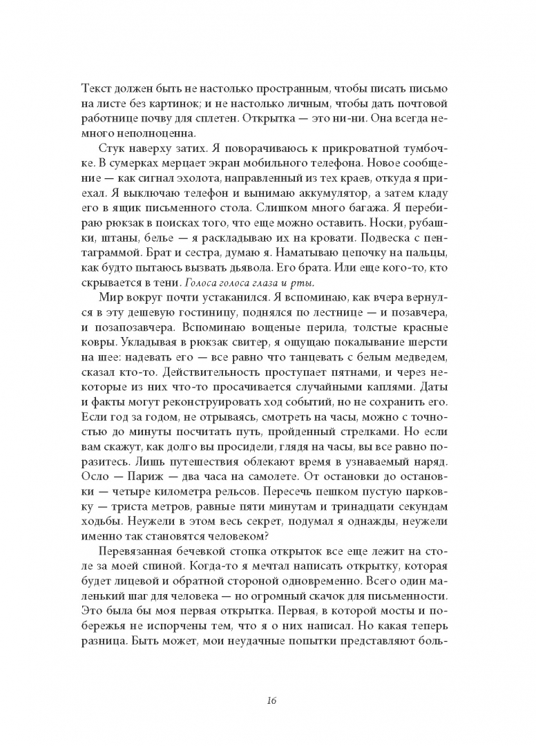 ОписаниеГерой просыпается в гостиничном номере, вдали от дома. При нем стопка открыток, которые помогут ему вспомнить, кто он, где он побывал и кого любил. Такова завязка романа норвежского писателя Турбьёрна Оппедала "Бумажные летчики" - истории о вымышленных путешествиях, амнезии и любви в эпоху путеводителей Lonely Planet.Книга собрана из кратких заметок о бессонных ночах, японском бумажном искусстве киригами, навесных замках, ноже, режущем плоть, о метели и джазе, о загадочных манускриптах и тех редких мгновениях, когда два человека могут понять друг друга без слов. Эта книга - настоящая ода почтовым открыткам, образующим невидимый миру круговорот и представляющим собой непризнанное искусство для любителей и коллекционеров всяких странностей.Изюминка книги - иллюстрации Свейна Стёрксена, отражающие повествование посредством ассоциаций и созданные в технике аналоговых коллажей из открыток со всего мира.Герой просыпается в гостиничном номере, вдали от дома. При нем стопка открыток, которые помогут ему вспомнить, кто он, где он побывал и кого любил. Такова завязка романа норвежского писателя Турбьёрна Оппедала "Бумажные летчики" - истории о вымышленных путешествиях, амнезии и любви в эпоху путеводителей Lonely Planet.Книга собрана из кратких заметок о бессонных ночах, японском бумажном искусстве киригами, навесных замках, ноже, режущем плоть, о метели и джазе, о загадочных манускриптах и тех редких мгновениях, когда два человека могут понять друг друга без слов. Эта книга - настоящая ода почтовым открыткам, образующим невидимый миру круговорот и представляющим собой непризнанное искусство для любителей и коллекционеров всяких странностей.Изюминка книги - иллюстрации Свейна Стёрксена, отражающие повествование посредством ассоциаций и созданные в технике аналоговых коллажей из открыток со всего мира.