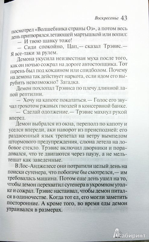 ОписаниеВ тихий городок Хвойная Бухта прибывает странная парочка. Один симпатичный - бывший семинарист, а теперь бродяга со стажем. Тревису под девяносто, но выглядит он молодо - лет на двадцать пять. Другой - редкий урод по имени Цап, свирепый повелитель древних царств и гурман человеческой плоти. Он нежно-зеленого цвета, но видит его не всякий - лишь те, кем он закусывает.Курортный городок расстелен перед демоном, точно шведский стол в четырехзвездочном отеле. Но за мирными американскими фасадами прячется магия похлеще заклинаний царя Соломона. Городские пьяницы, разгильдяи, незадачливые любовники, виртуальные трансвеститы, неоязычники, буддист-виноторговец, помешанный на готике ресторатор с говорящим именем Говард Филлипс и барменша из нержавеющей стали... Даже самому кровожадному демону нелегко устоять против такой гвардии.Бешеная фантазия Кристофера Мура выплескивается со страниц с пугающей силой, его кошмары цветными брызгами летят во все стороны, но... все будет хорошо.В тихий городок Хвойная Бухта прибывает странная парочка. Один симпатичный - бывший семинарист, а теперь бродяга со стажем. Тревису под девяносто, но выглядит он молодо - лет на двадцать пять. Другой - редкий урод по имени Цап, свирепый повелитель древних царств и гурман человеческой плоти. Он нежно-зеленого цвета, но видит его не всякий - лишь те, кем он закусывает.Курортный городок расстелен перед демоном, точно шведский стол в четырехзвездочном отеле. Но за мирными американскими фасадами прячется магия похлеще заклинаний царя Соломона. Городские пьяницы, разгильдяи, незадачливые любовники, виртуальные трансвеститы, неоязычники, буддист-виноторговец, помешанный на готике ресторатор с говорящим именем Говард Филлипс и барменша из нержавеющей стали... Даже самому кровожадному демону нелегко устоять против такой гвардии.Бешеная фантазия Кристофера Мура выплескивается со страниц с пугающей силой, его кошмары цветными брызгами летят во все стороны, но... все будет хорошо.
