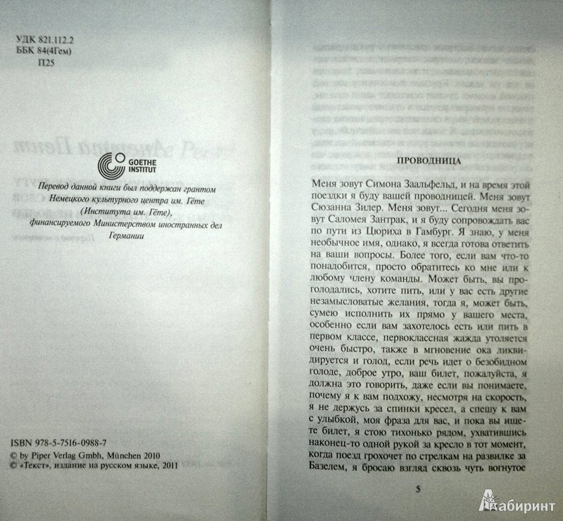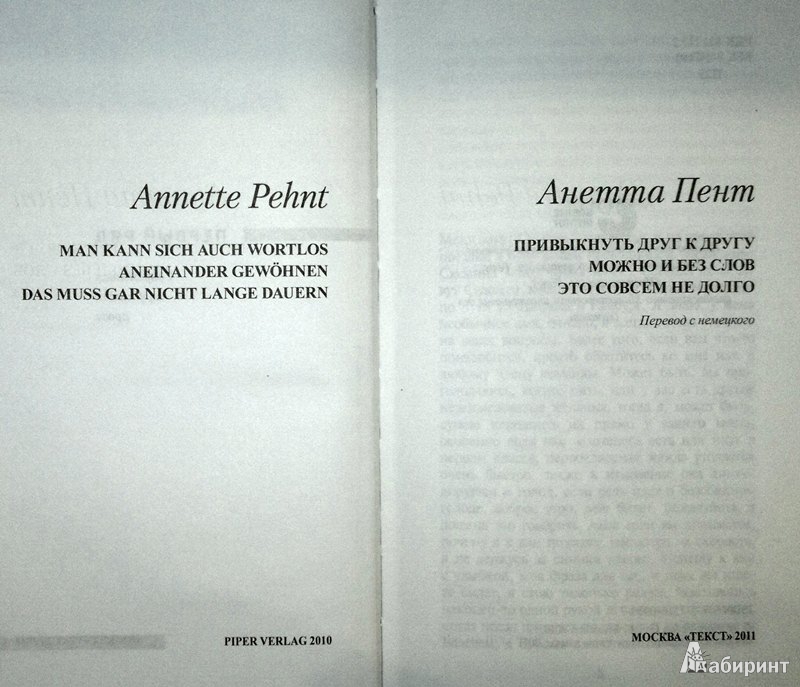 ОписаниеЯзык Аннеты Пент достигает глубокой, истинной лаконичности, вибрирует от внутреннего напряжения, от артикулируемого молчания."Цайт"Перевод этой книги - плод усилий замечательной команды десяти молодых переводчиков. Четырнадцать человек на место - таков был литературный конкурс, который надо было пройти, чтобы получить право переводить эту книгу.Когда с победивших работ сняли шифр, выяснилось, что их авторы из разных уголков России - из Красноярска, Саратова, Петербурга, Москвы. Затем все собрались в Москве и под эгидой Гете-Института обсуждали особенности стиля А. Пент, вникали в нюансы мыслей и приемов автора, пытались понять логику поведения героев. А потом приехала сама писательница - Анетта Пент. Она постаралась ответить на самые каверзные вопросы и разъяснить все непонятности - ведь далеко не все можно полностью перенести из одного языка в другой, то и дело приходится по крупицам добывать все новые и новые соответствия.В результате этого сотворчества получилась уникальная книга. Очень откровенная лиричная проза, местами трогательная, местами смешная, которая едва ли оставит кого-нибудь равнодушным. В любом возрасте.Она, без сомнения, способствует взаимопониманию культур и отдельных людей.Анетта Пент - немецкая писательница и литературный критик. По масштабу дарования А. Пент можно сравнить с Мюриэл Спарк. В 2002 году стала лауреатом Премии Ингеборг Бахман, в 2009 году ей была присуждена Премия Итало Свево.СвернутьЯзык Аннеты Пент достигает глубокой, истинной лаконичности, вибрирует от внутреннего напряжения, от артикулируемого молчания."Цайт"Перевод этой книги - плод усилий замечательной команды десяти молодых переводчиков. Четырнадцать человек на место - таков был литературный конкурс, который надо было пройти, чтобы получить право переводить эту книгу.Когда с победивших работ сняли шифр, выяснилось, что их авторы из разных уголков России - из Красноярска, Саратова, Петербурга, Москвы. Затем все собрались в Москве и под эгидой Гете-Института обсуждали особенности стиля А. Пент, вникали в нюансы мыслей и приемов автора, пытались понять логику поведения героев. А потом приехала сама писательница - Анетта Пент. Она постаралась ответить на самые каверзные вопросы и разъяснить все непонятности - ведь далеко не все можно полностью перенести из одного языка в другой, то и дело приходится по крупицам добывать все новые и новые соответствия.В результате этого сотворчества получилась уникальная книга. Очень откровенная лиричная проза, местами трогательная, местами смешная, которая едва ли оставит кого-нибудь равнодушным. В любом возрасте.Она, без сомнения, способствует взаимопониманию культур и отдельных людей.Анетта Пент - немецкая писательница и литературный критик. По масштабу дарования А. Пент можно сравнить с Мюриэл Спарк. В 2002 году стала лауреатом Премии Ингеборг Бахман, в 2009 году ей была присуждена Премия Итало Свево.СвернутьСвернуть