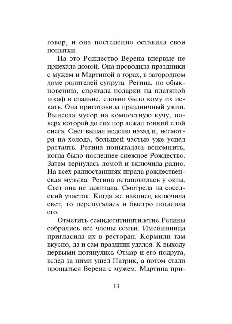 ОписаниеЭпиграфом к этому сборнику рассказов известный швейцарский писатель и драматург Петер Штамм (р. 1963) избрал цитату из Иоганна Вольфганга фон Гете: "Он выглянул в окно и в каком-то незнакомом саду увидел много людей; некоторых он тотчас же узнал".Герои рассказов - странники и мечтатели. Участник автошоу Генри ездит с труппой артистов и мечтает встретить необыкновенную девушку. Эрик отправляется на работу в Латвию. Регина, после смерти мужа оставшись в большом пустом доме, мечтает о том, чтобы он снова был полон, как в молодости, и о путешествии, которое она обязательно еще совершит.Они живут в Америке и Швейцарии. Работают в Англии и Латвии. Встречаются в лиссабонском баре. И все они постоянно пребывают в ожидании. Ждут поезда, или любви, или возвращения соседки, чей сад цветет не переставая.Петеру Штамму всегда удается сказать в нескольких словах больше, чем другим на трехстах страницах. "Штутгартер цайтунг"Эпиграфом к этому сборнику рассказов известный швейцарский писатель и драматург Петер Штамм (р. 1963) избрал цитату из Иоганна Вольфганга фон Гете: "Он выглянул в окно и в каком-то незнакомом саду увидел много людей; некоторых он тотчас же узнал".Герои рассказов - странники и мечтатели. Участник автошоу Генри ездит с труппой артистов и мечтает встретить необыкновенную девушку. Эрик отправляется на работу в Латвию. Регина, после смерти мужа оставшись в большом пустом доме, мечтает о том, чтобы он снова был полон, как в молодости, и о путешествии, которое она обязательно еще совершит.Они живут в Америке и Швейцарии. Работают в Англии и Латвии. Встречаются в лиссабонском баре. И все они постоянно пребывают в ожидании. Ждут поезда, или любви, или возвращения соседки, чей сад цветет не переставая.Петеру Штамму всегда удается сказать в нескольких словах больше, чем другим на трехстах страницах. "Штутгартер цайтунг"