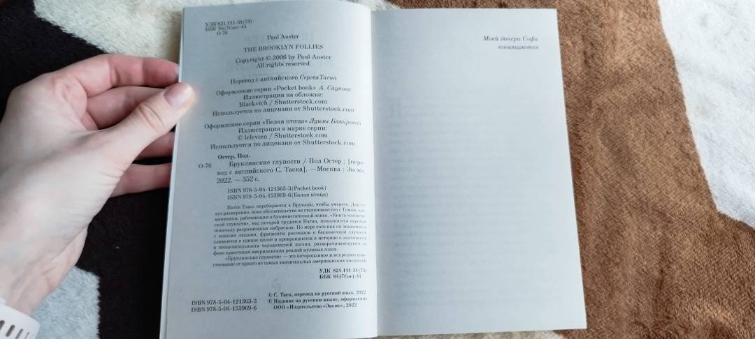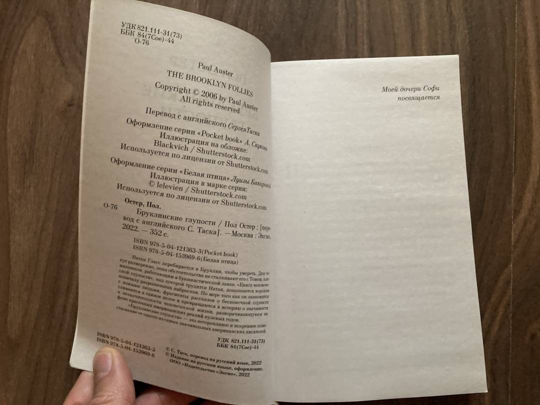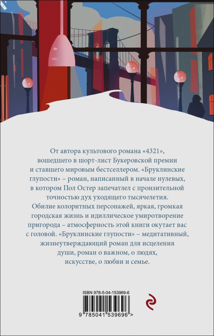 ОписаниеОт автора культового романа «4321», вошедшего в шорт-лист Букеровской премии и ставшего мировым бестселлером. «Бруклинские глупости» — роман, написанный в начале нулевых, в котором Пол Остер запечатлел с пронзительной точностью дух уходящего тысячелетия. Обилие колоритных персонажей, яркая, громкая городская жизнь и идиллическое умиротворение пригорода — атмосферность этой книги окутает вас с головой. «Бруклинские глупости» — медитативный, жизнеутверждающий роман для исцеления души, роман о важном, о людях, искусстве, о любви и семье.От автора культового романа «4321», вошедшего в шорт-лист Букеровской премии и ставшего мировым бестселлером. «Бруклинские глупости» — роман, написанный в начале нулевых, в котором Пол Остер запечатлел с пронзительной точностью дух уходящего тысячелетия. Обилие колоритных персонажей, яркая, громкая городская жизнь и идиллическое умиротворение пригорода — атмосферность этой книги окутает вас с головой. «Бруклинские глупости» — медитативный, жизнеутверждающий роман для исцеления души, роман о важном, о людях, искусстве, о любви и семье.