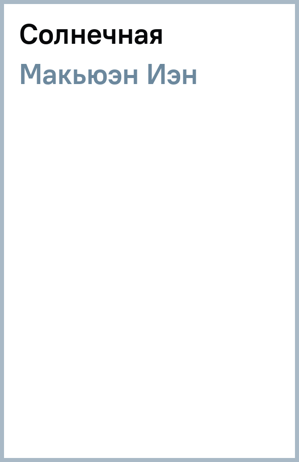 --Иэн Макьюэн: СолнечнаяРусская классическая и современная литератураЗарубежная художественная литератураРусская художественная литератураФэнтезиДраматургияПоэзияПриключенияФантастикаЭпос и фольклорКлассическая прозаАфоризмыИсторическая прозаДетективыБасниСентиментальная прозаОтечественный боевикСовременная прозаМолодежная литератураЗарубежная классическая и современная литература