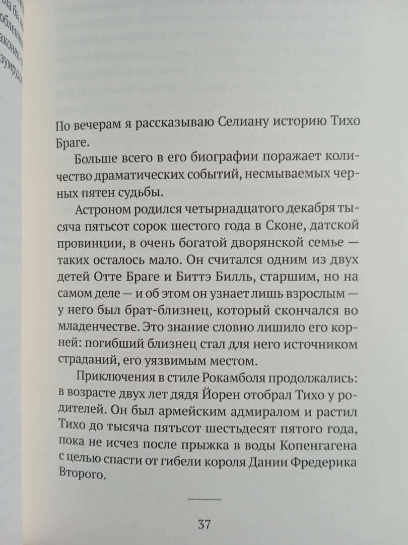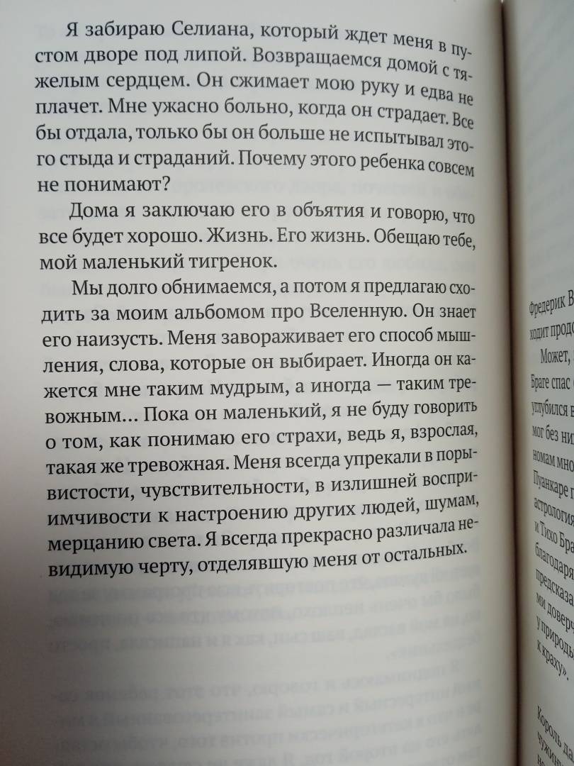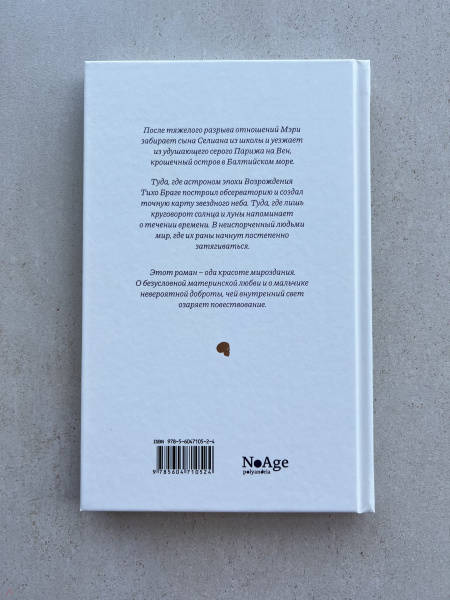 ОписаниеПосле тяжелого разрыва отношений Мэри забирает сына Селиана из школы и уезжает из удушающего серого Парижа на Вен, крошечный остров в Балтийском море.Туда, где астроном эпохи Возрождения Тихо Браге построил обсерваторию и создал точную карту звездного неба. Туда, где лишь круговорот солнца и луны напоминает о течении времени. В неиспорченный людьми мир, где их раны начнут постепенно затягиваться.Этот роман — ода красоте мироздания. О безусловной материнской любви и о мальчике невероятной доброты, чей внутренний свет озаряет повествование.После тяжелого разрыва отношений Мэри забирает сына Селиана из школы и уезжает из удушающего серого Парижа на Вен, крошечный остров в Балтийском море.Туда, где астроном эпохи Возрождения Тихо Браге построил обсерваторию и создал точную карту звездного неба. Туда, где лишь круговорот солнца и луны напоминает о течении времени. В неиспорченный людьми мир, где их раны начнут постепенно затягиваться.Этот роман — ода красоте мироздания. О безусловной материнской любви и о мальчике невероятной доброты, чей внутренний свет озаряет повествование.