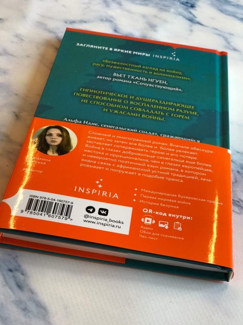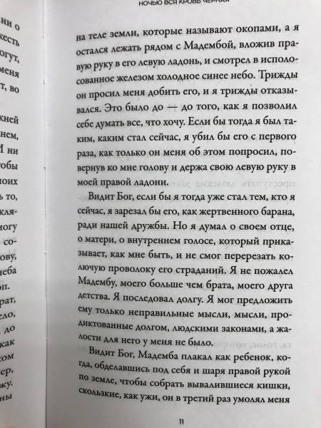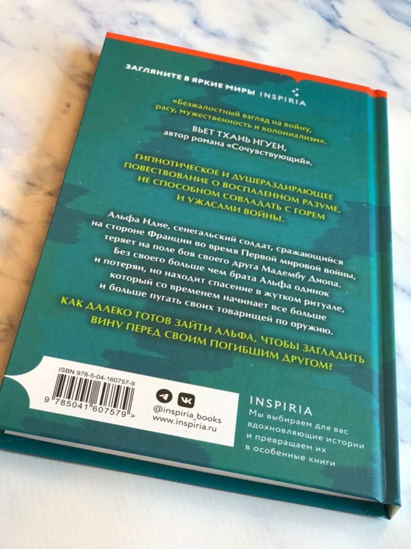 ОписаниеРоман — лауреат Международной Букеровской премии 2021 года, Европейской литературной премии и Гонкуровской премии лицеистов.Гипнотическое и душераздирающее повествование о воспаленном разуме, не способном совладать с горем и ужасами войны. Альфа Ндие, сенегальский солдат, сражающийся на стороне Франции во время Первой мировой войны, теряет на поле боя своего друга Мадембу Диопа. Без своего больше чем брата Альфа одинок и потерян, но находит спасение в жутком ритуале, который со временем начинает все больше и больше пугать своих товарищей по оружию. Как далеко готов зайти Альфа, чтобы загладить вину перед своим погибшим другом?Насквозь пронизанный пулями и языческой магией, «Ночью вся кровь черная» напоминает о забытой главе в истории Первой мировой войны. Смешав традиции устного повествования с сухим журналистским описанием ужасов жизни в окопах, Давид Диоп создал необычайную по силе и поражению историю о погружении человека в безумие.Роман — лауреат Международной Букеровской премии 2021 года, Европейской литературной премии и Гонкуровской премии лицеистов.Гипнотическое и душераздирающее повествование о воспаленном разуме, не способном совладать с горем и ужасами войны. Альфа Ндие, сенегальский солдат, сражающийся на стороне Франции во время Первой мировой войны, теряет на поле боя своего друга Мадембу Диопа. Без своего больше чем брата Альфа одинок и потерян, но находит спасение в жутком ритуале, который со временем начинает все больше и больше пугать своих товарищей по оружию. Как далеко готов зайти Альфа, чтобы загладить вину перед своим погибшим другом?Насквозь пронизанный пулями и языческой магией, «Ночью вся кровь черная» напоминает о забытой главе в истории Первой мировой войны. Смешав традиции устного повествования с сухим журналистским описанием ужасов жизни в окопах, Давид Диоп создал необычайную по силе и поражению историю о погружении человека в безумие.