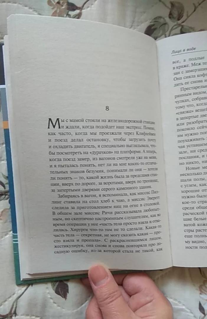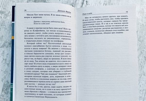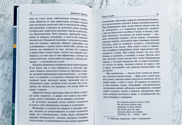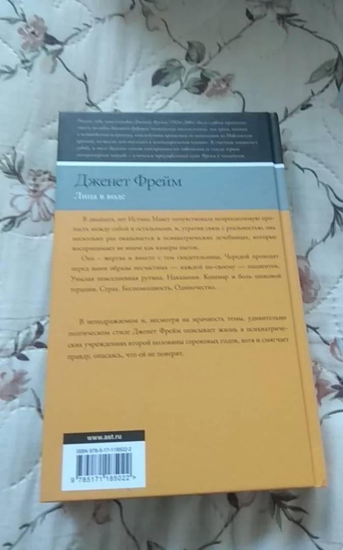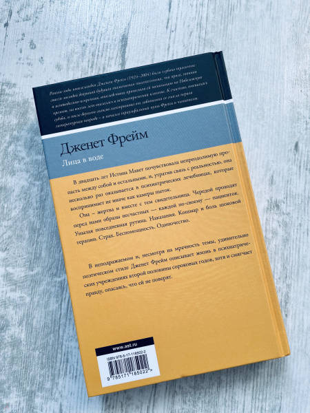 В неподражаемом и, несмотря на мрачность темы, удивительно поэтическом стиле Дженет Фрейм описывает жизнь в психиатрических учреждениях второй половины сороковых годов, хотя и смягчает правду, опасаясь, что ей не поверят.Здесь нет ни прошлого, ни будущего, ни настоящего. Здесь все дни сливаются воедино. Самая большая боль — терапия, самый большой страх — неизбежность лоботомии. Единственный способ выжить — не злить медперсонал и активнее начищать столовое серебро. «Лица в воде» — страшный и одновременно поэтичный, струящийся поток сознания пациентки психиатрической клиники, отчаянно пытающейся сохранить разум среди душевнобольных пациентов.