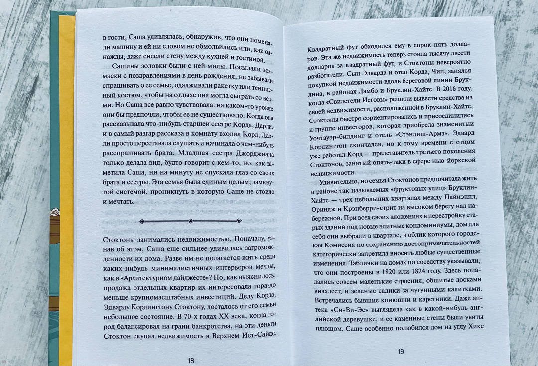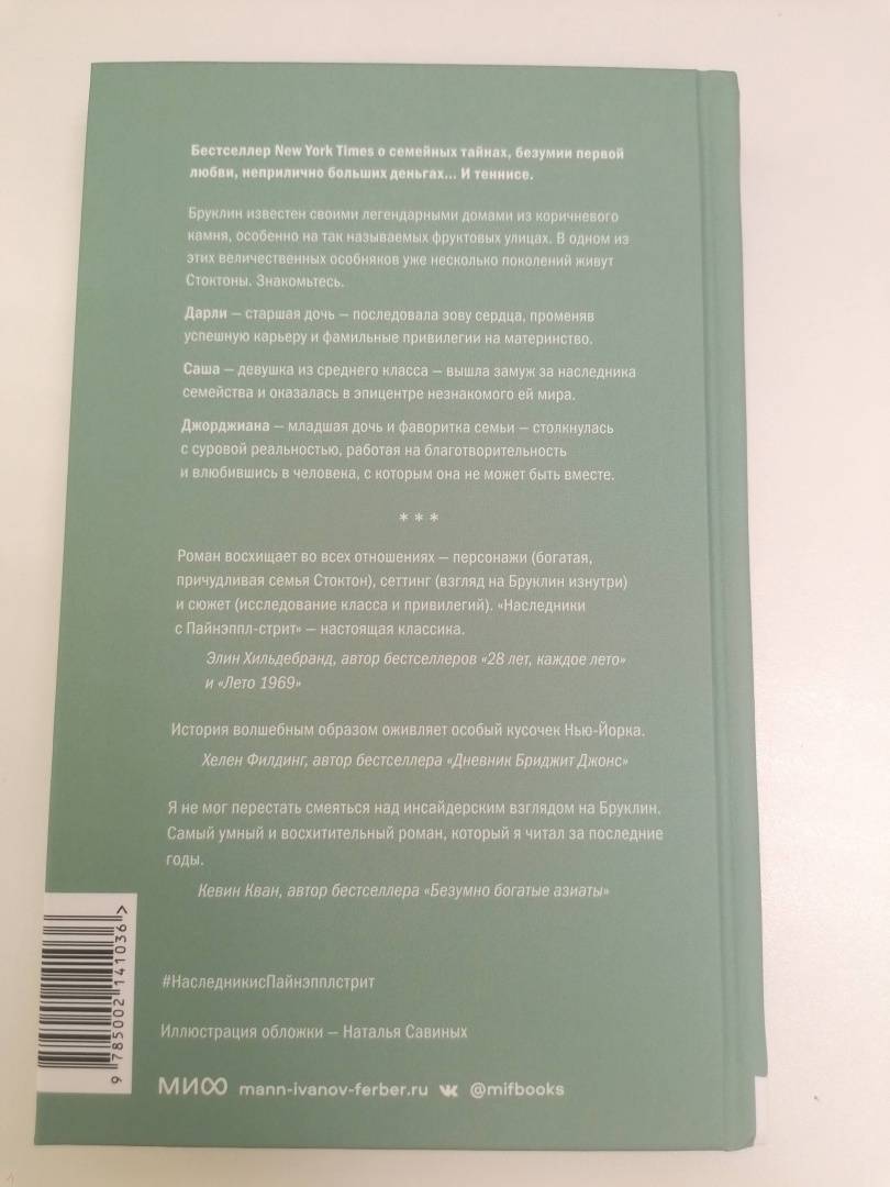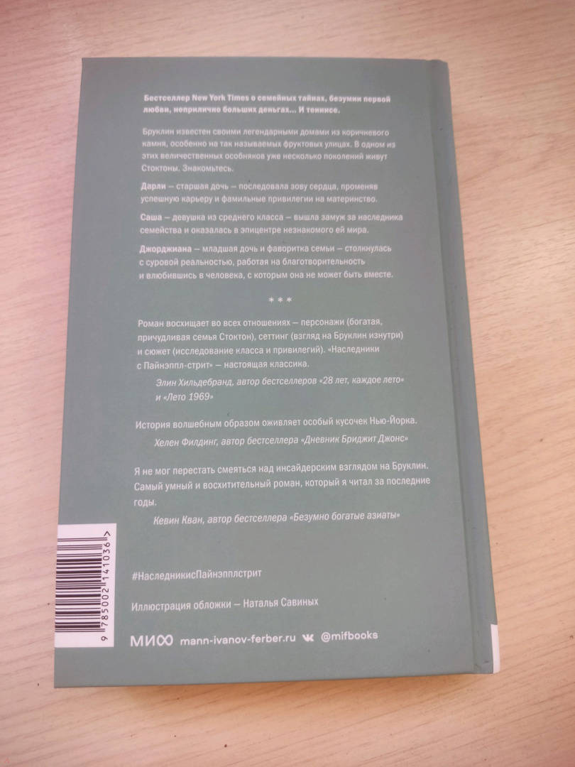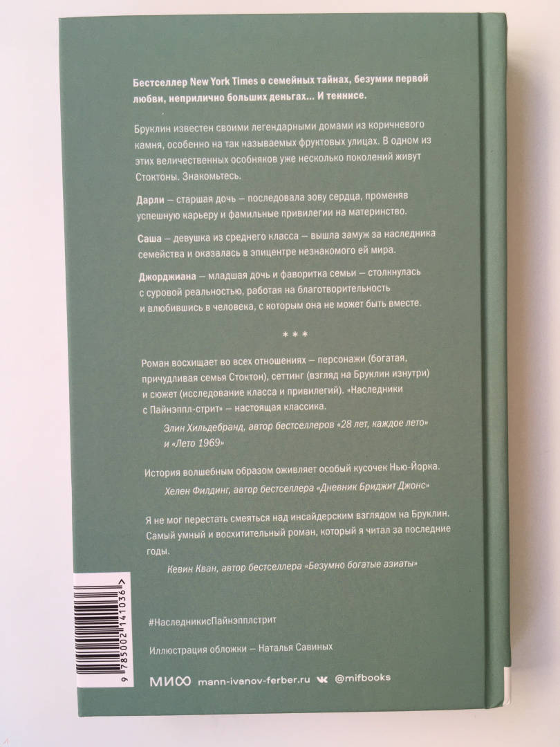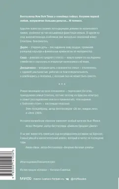 ОписаниеБруклин известен своими легендарными домами из коричневого камня, особенно на так называемых фруктовых улицах. В одном из этих величественных особняков уже несколько поколений живут Стоктоны. Дарли - старшая дочь - последовала зову сердца, променяв успешную карьеру и фамильные привилегии на материнство. Саша - средняя дочь - вышла замуж за наследника семейства и оказалась в эпицентре незнакомого ей мира. Джорджиана - младшая дочь и фаворитка семьи - столкнулась с суровой реальностью, работая на благотворительность и влюбившись в человека, с которым она не может быть вместе.Бруклин известен своими легендарными домами из коричневого камня, особенно на так называемых фруктовых улицах. В одном из этих величественных особняков уже несколько поколений живут Стоктоны. Дарли - старшая дочь - последовала зову сердца, променяв успешную карьеру и фамильные привилегии на материнство. Саша - средняя дочь - вышла замуж за наследника семейства и оказалась в эпицентре незнакомого ей мира. Джорджиана - младшая дочь и фаворитка семьи - столкнулась с суровой реальностью, работая на благотворительность и влюбившись в человека, с которым она не может быть вместе.