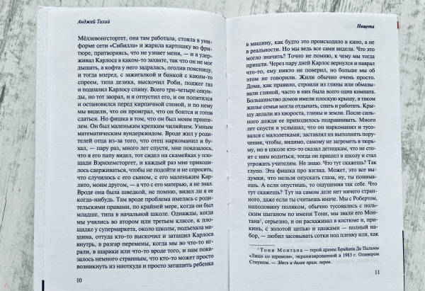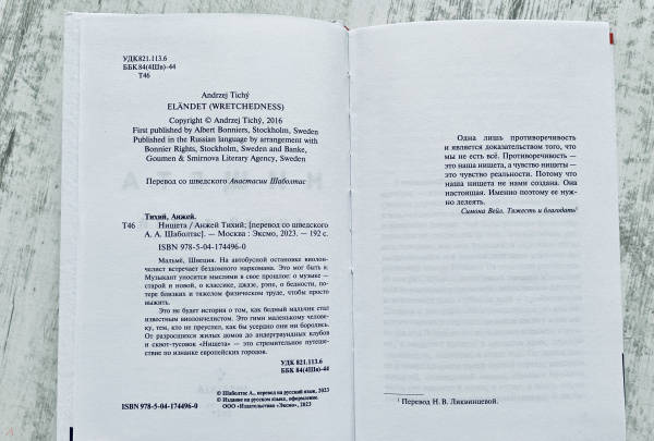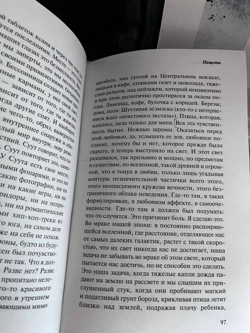 ОписаниеМальмё, Швеция. На автобусной остановке виолончелист встречает бездомного наркомана. Это мог быть я. Музыкант уносится мыслями в свое прошлое: о музыке — старой и новой, о классике, джазе, рэпе, о бедности, потере близких и тяжелом физическом труде, чтобы просто выжить. Это не будет история о том, как бедный мальчик стал известным виолончелистом. Это гимн маленькому человеку, тем, кто не преуспел, как бы усердно они ни боролись. От разросшихся жилых домов до андерграундных клубов и сквот-тусовок «Нищета» — это стремительное путешествие по изнанке европейских городов. «Полифония голосов тесно вплетена в повествование, напоминающее сложную музыкальную композицию. Книга обрывается резко, как могла бы закончиться авангардная музыка, но ее вибрации продолжают наполнять воздух». — The GuardianМальмё, Швеция. На автобусной остановке виолончелист встречает бездомного наркомана. Это мог быть я. Музыкант уносится мыслями в свое прошлое: о музыке — старой и новой, о классике, джазе, рэпе, о бедности, потере близких и тяжелом физическом труде, чтобы просто выжить. Это не будет история о том, как бедный мальчик стал известным виолончелистом. Это гимн маленькому человеку, тем, кто не преуспел, как бы усердно они ни боролись. От разросшихся жилых домов до андерграундных клубов и сквот-тусовок «Нищета» — это стремительное путешествие по изнанке европейских городов. «Полифония голосов тесно вплетена в повествование, напоминающее сложную музыкальную композицию. Книга обрывается резко, как могла бы закончиться авангардная музыка, но ее вибрации продолжают наполнять воздух». — The Guardian