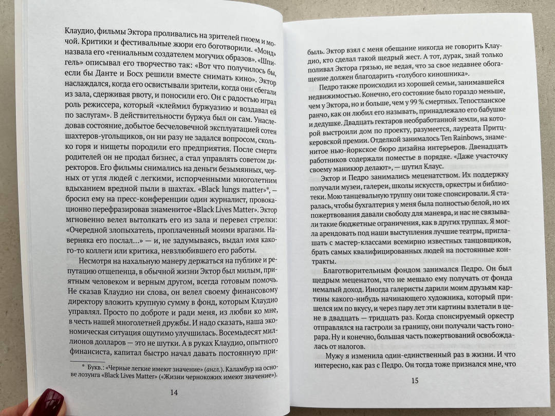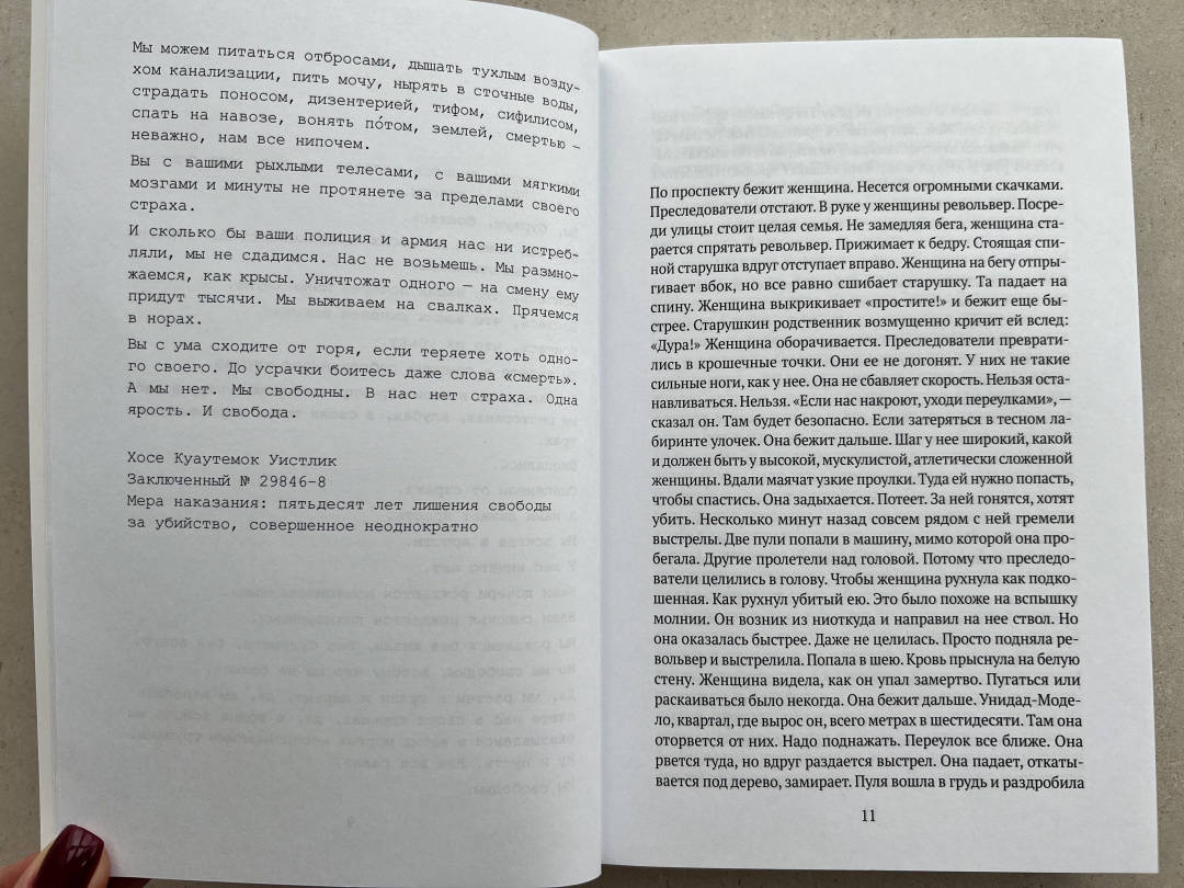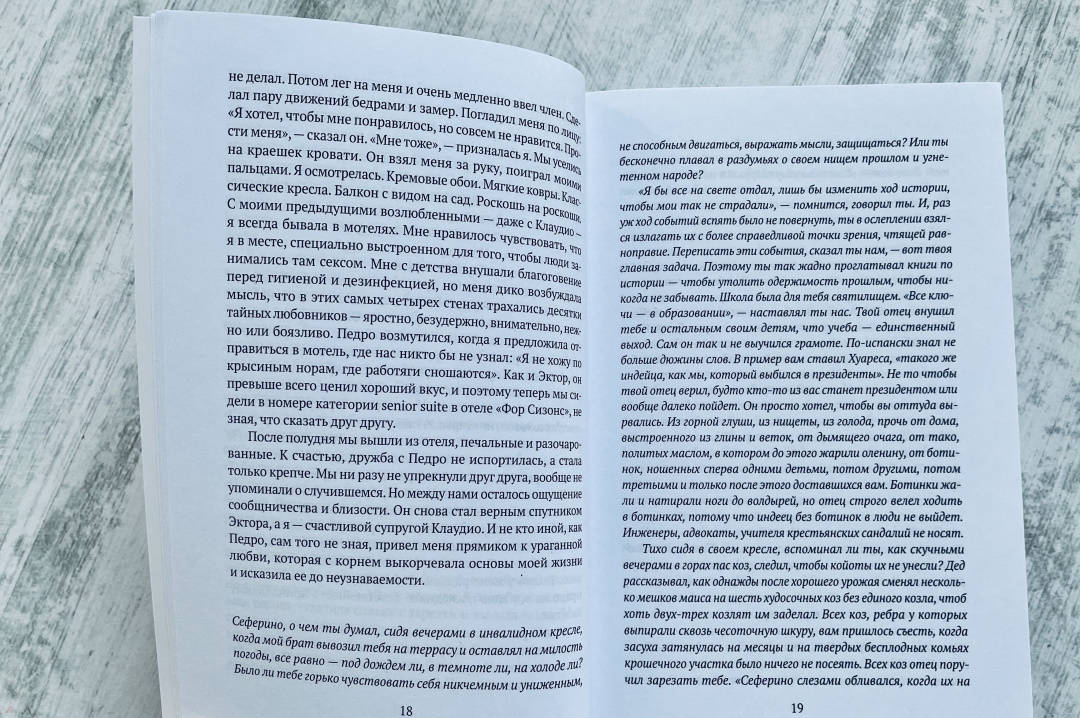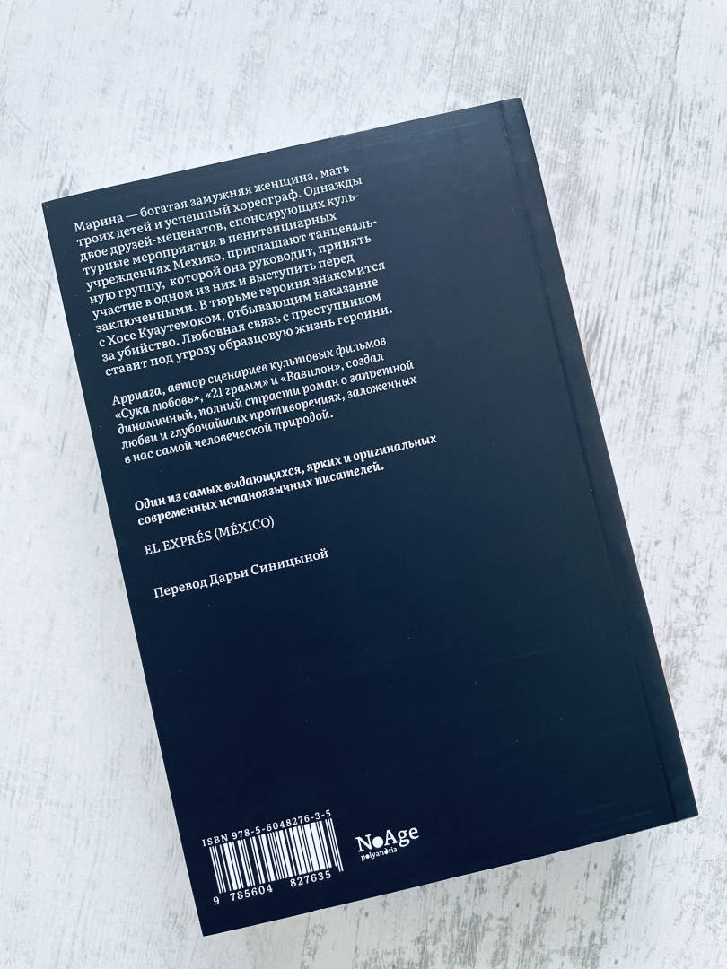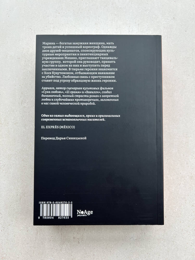 ОписаниеМарина — богатая замужняя женщина, мать троих детей и успешный хореограф. Однажды двое друзей-меценатов, спонсирующих культурные мероприятия в пенитенциарных учреждениях Мехико, приглашают танцевальную группу, которой она руководит, принять участие в одном из них и выступить перед заключенными. В тюрьме героиня знакомится с Хосе Куаутемоком, отбывающим наказание за убийство. Любовная связь с преступником ставит под угрозу образцовую жизнь героини.Арриага, автор сценариев культовых фильмов «Сука любовь», «21 грамм» и «Вавилон», создал динамичный, полный страсти роман о запретной любви и глубочайших противоречиях, заложенных в нас самой человеческой природой.Марина — богатая замужняя женщина, мать троих детей и успешный хореограф. Однажды двое друзей-меценатов, спонсирующих культурные мероприятия в пенитенциарных учреждениях Мехико, приглашают танцевальную группу, которой она руководит, принять участие в одном из них и выступить перед заключенными. В тюрьме героиня знакомится с Хосе Куаутемоком, отбывающим наказание за убийство. Любовная связь с преступником ставит под угрозу образцовую жизнь героини.Арриага, автор сценариев культовых фильмов «Сука любовь», «21 грамм» и «Вавилон», создал динамичный, полный страсти роман о запретной любви и глубочайших противоречиях, заложенных в нас самой человеческой природой.