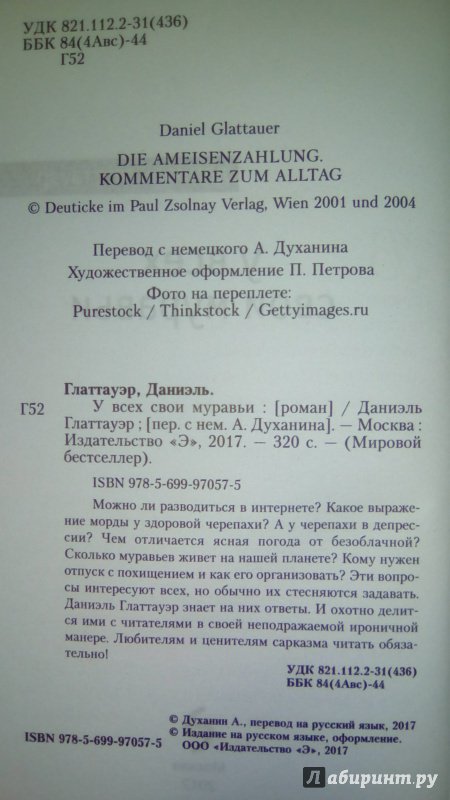--Даниэль Глаттауэр: У всех свои муравьиРусская классическая и современная литератураЗарубежная художественная литератураРусская художественная литератураФэнтезиДраматургияПоэзияПриключенияФантастикаЭпос и фольклорКлассическая прозаАфоризмыИсторическая прозаДетективыБасниСентиментальная прозаОтечественный боевикСовременная прозаМолодежная литератураЗарубежная классическая и современная литература