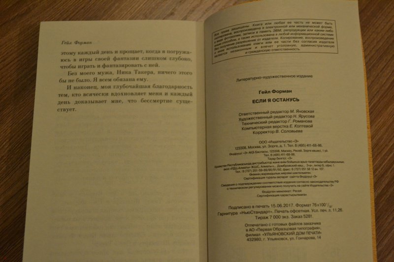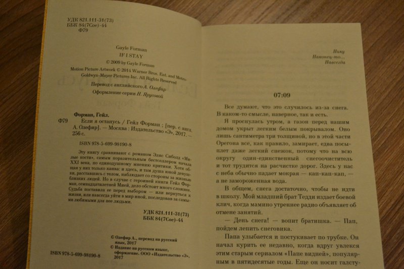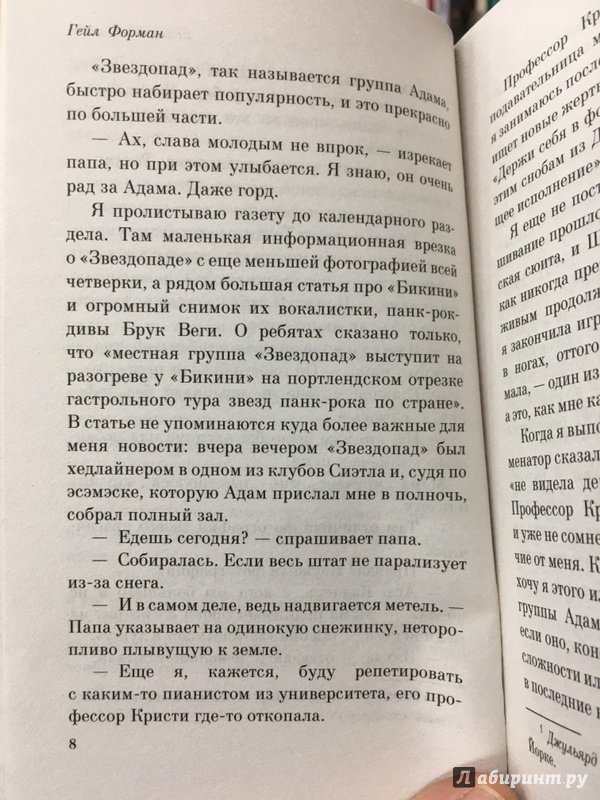 Объем, стр. 256 ISBN 978-5-699-98190-8 Автор Форман Гейл, Олефир Анна Переводчик Олефир Анна Серия Культовая классика (крафт) Минимальный возраст 16+ Год издания книги 2017 Тип обложки Мягкий переплет Иллюстрации Без иллюстраций Вес, г 132г Размеры 180х115х16 мм - Отзывы