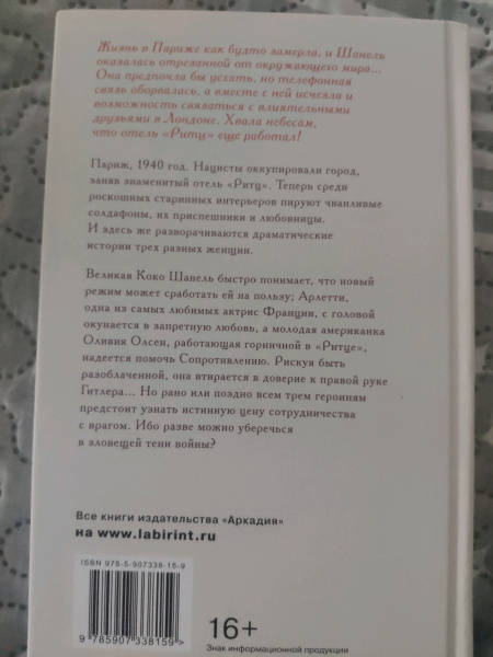 ОписаниеТри женщины, три парижанки, еще не знают, что скоро их жизнь неотвратимо изменится: на пороге Вторая мировая, хотя пока мало кто воспринимает угрозу всерьез. Но вот нацистские сапоги уже топчут парижские мостовые, а в отеле "Ритц", средоточии роскоши и французского шика, поселяются новые господа - высшие гитлеровские чины со своими свитами. Каждой из героинь предстоит сделать собственный выбор и по-своему построить отношения с оккупантами, но отголоски этих решений будут преследовать их до конца дней.Сочетая вымысел и реальные факты биографий Арлетти, Коко Шанель, Германа Геринга и других знаменитых личностей, популярный писатель-историк Мариус Габриэль разворачивает перед читателем впечатляющую панораму жизни парижского высшего света в страшные годы войны.Три женщины, три парижанки, еще не знают, что скоро их жизнь неотвратимо изменится: на пороге Вторая мировая, хотя пока мало кто воспринимает угрозу всерьез. Но вот нацистские сапоги уже топчут парижские мостовые, а в отеле "Ритц", средоточии роскоши и французского шика, поселяются новые господа - высшие гитлеровские чины со своими свитами. Каждой из героинь предстоит сделать собственный выбор и по-своему построить отношения с оккупантами, но отголоски этих решений будут преследовать их до конца дней.Сочетая вымысел и реальные факты биографий Арлетти, Коко Шанель, Германа Геринга и других знаменитых личностей, популярный писатель-историк Мариус Габриэль разворачивает перед читателем впечатляющую панораму жизни парижского высшего света в страшные годы войны.