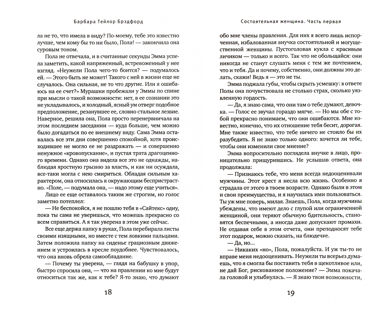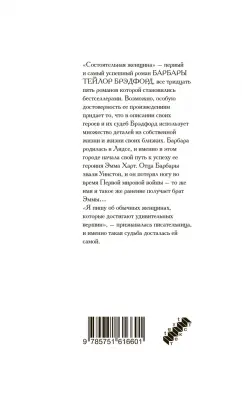 ОписаниеДо настоящего времени Барбара Тейлор Брэдфорд написала тридцать пять романов, и все они становились бестселлерами, но "Состоятельная женщина", первый ее роман, увидевший свет в 1979 году, завоевал особенную популярность и продолжает издаваться - во всем мире продано уже более тридцати миллионов экземпляров этой семейной саги. По этому произведению в 1984 году был снят английский сериал с Дженни Сигроув в главной роли, имевший оглушительный успех.Эмма Харт, девушка из бедной семьи, живущей в йоркширской деревне, благодаря необыкновенной воле, уму и красоте преодолевает тяжкие удары судьбы и становится фантастически богатой и влиятельной женщиной.Глава могущественной финансовой империи великолепная Эмма Харт прожила удивительную жизнь, в которой было все - отчаяние и одиночество, ненавистные враги и верные друзья, большая любовь и предательство самых близких людей. Твердой рукой управляла она своим большим семейством, и вот теперь ей предстоит решить нелегкую задачу - кто сможет достойно продолжить ее дело? Не всем она может доверять, но у нее есть любимая внучка, Пола Фарли, так похожая на нее саму...Возможно, особую достоверность ее произведениям придает то, что в описании своих героев и их судеб Брэдфорд использует множество деталей из собственной жизни и жизни своих близких. Барбара родилась в Лидсе, и именно в этом городе начала свой путь к успеху ее героиня Эмма Харт. Основная тема первой книги - это работа Эммы, еще подростка, в доме знатного и богатого сквайра Адама Фарли в качестве служанки, ее первая любовь и драматические события в ее семье. Отца Барбары звали Уинстон, и он потерял ногу во время Первой мировой войны - то же имя и такое же ранение получает брат Эммы…"Я пишу об обычных женщинах, которые достигают удивительных вершин", - признавалась писательница, и именно такая судьба досталась ей самой.СвернутьДо настоящего времени Барбара Тейлор Брэдфорд написала тридцать пять романов, и все они становились бестселлерами, но "Состоятельная женщина", первый ее роман, увидевший свет в 1979 году, завоевал особенную популярность и продолжает издаваться - во всем мире продано уже более тридцати миллионов экземпляров этой семейной саги. По этому произведению в 1984 году был снят английский сериал с Дженни Сигроув в главной роли, имевший оглушительный успех.Эмма Харт, девушка из бедной семьи, живущей в йоркширской деревне, благодаря необыкновенной воле, уму и красоте преодолевает тяжкие удары судьбы и становится фантастически богатой и влиятельной женщиной.Глава могущественной финансовой империи великолепная Эмма Харт прожила удивительную жизнь, в которой было все - отчаяние и одиночество, ненавистные враги и верные друзья, большая любовь и предательство самых близких людей. Твердой рукой управляла она своим большим семейством, и вот теперь ей предстоит решить нелегкую задачу - кто сможет достойно продолжить ее дело? Не всем она может доверять, но у нее есть любимая внучка, Пола Фарли, так похожая на нее саму...Возможно, особую достоверность ее произведениям придает то, что в описании своих героев и их судеб Брэдфорд использует множество деталей из собственной жизни и жизни своих близких. Барбара родилась в Лидсе, и именно в этом городе начала свой путь к успеху ее героиня Эмма Харт. Основная тема первой книги - это рабо