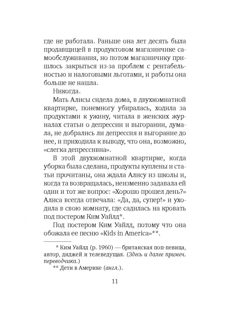 ОписаниеТомас Гунциг, бельгийский писатель, лауреат многих литературных премий, рассказывает о нелегкой жизни матери-одиночки, которая героически сражается с превратностями судьбы. Алиса потеряла работу, на пособие по безработице концы с концами не свести. Она одна на свете, помощи ждать не от кого. Нечем платить за квартиру, скоро она окажется на улице, а ее обожаемого сына заберут в приемную семью. Чтобы избежать катастрофы, Алиса решается на отчаянный шаг…Томас Гунциг, бельгийский писатель, лауреат многих литературных премий, рассказывает о нелегкой жизни матери-одиночки, которая героически сражается с превратностями судьбы. Алиса потеряла работу, на пособие по безработице концы с концами не свести. Она одна на свете, помощи ждать не от кого. Нечем платить за квартиру, скоро она окажется на улице, а ее обожаемого сына заберут в приемную семью. Чтобы избежать катастрофы, Алиса решается на отчаянный шаг…