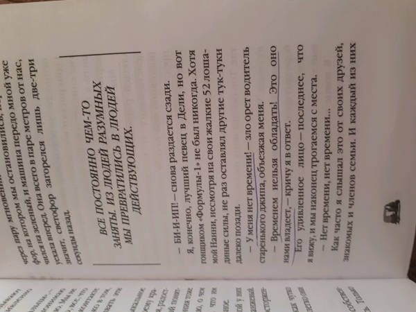 ОписаниеАвтор этой книги Бийон Каттилату - дипломированный инженер-экономист, доктор наук в области клиентской психологии. Каждый день рикша-философ из Нью-Дели по имени Рахул развозит на своем тук-туке пассажиров. Все они разные: бизнесмен и подросток, турист и студентка, профессор и подвыпивший посетитель клуба… У каждого из них своя история. И поездка не проходит бесследно ни для Рахула, ни для его пассажиров, что-то неуловимо меняя в их жизнях. Герои книги понимают, как важно жить не прошлым или будущим, а настоящим моментом; что решения, которые привели к плохому результату – это тоже полезный жизненный опыт; что ситуацию можно только принять, изменить или отпустить; что время – это богатство, которое мы каждый день выигрываем в лотерею, и только от нас зависит, как им распорядиться; что мы можем изменить только одного человека на свете – самого себя; и наконец, что счастье следует искать не где-то извне, а в нас самих.Цитаты: