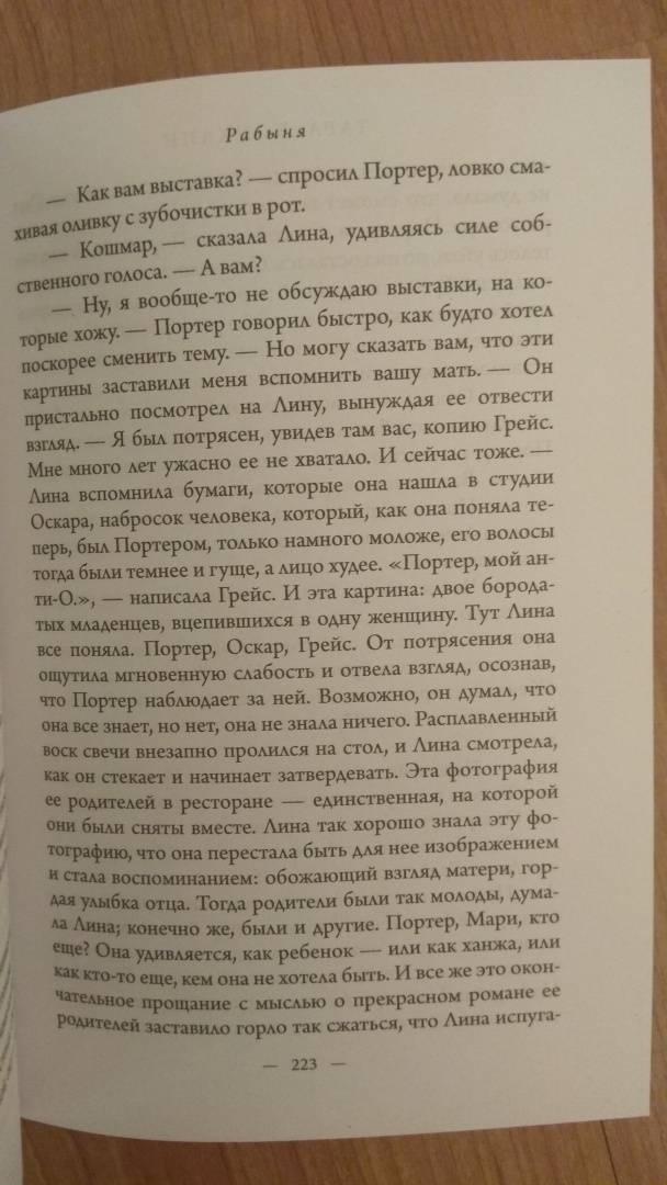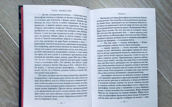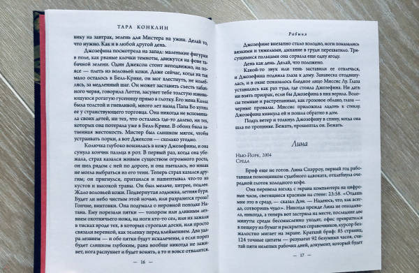 ОписаниеСемнадцатилетняя рабыня Жозефина – прислуга на табачной ферме в Вирджинии, тайно увлекающаяся искусством. Она планирует совершить побег, потому что не может больше терпеть капризы хозяйки и, что еще хуже, домогательства хозяина. Лина – амбициозная юристка из современного Нью-Йорка, близкая к художественным кругам и работающая над беспрецедентным иском, уходящим корнями в далекое прошлое. Роман Тары Конклин – история об уникальном таланте и о поиске справедливости, в центре которого судьбы двух женщин, разделенные пластом времени более чем в сотню лет. Семнадцатилетняя рабыня Жозефина – прислуга на табачной ферме в Вирджинии, тайно увлекающаяся искусством. Она планирует совершить побег, потому что не может больше терпеть капризы хозяйки и, что еще хуже, домогательства хозяина. Лина – амбициозная юристка из современного Нью-Йорка, близкая к художественным кругам и работающая над беспрецедентным иском, уходящим корнями в далекое прошлое. Роман Тары Конклин "Рабыня" – история об уникальном таланте и о поиске справедливости, в центре которого судьбы двух женщин, разделенные пластом времени более чем в сотню лет.СвернутьСемнадцатилетняя рабыня Жозефина – прислуга на табачной ферме в Вирджинии, тайно увлекающаяся искусством. Она планирует совершить побег, потому что не может больше терпеть капризы хозяйки и, что еще хуже, домогательства хозяина. Лина – амбициозная юристка из современного Нью-Йорка, близкая к художественным кругам и работающая над беспрецедентным иском, уходящим корнями в далекое прошлое. Роман Тары Конклин – история об уникальном таланте и о поиске справедливости, в центре которого судьбы двух женщин, разделенные пластом времени более чем в сотню лет. Семнадцатилетняя рабыня Жозефина – прислуга на табачной ферме в Вирджинии, тайно увлекающаяся искусством. Она планирует совершить побег, потому что не может больше терпеть капризы хозяйки и, что еще хуже, домогательства хозяина. Лина – амбициозная юристка из современного Нью-Йорка, близкая к художественным кругам и работающая над беспрецедентным иском, уходящим корнями в далекое прошлое. Роман Тары Конклин "Рабыня" – история об уникальном таланте и о поиске справедливости, в центре которого судьбы двух женщин, разделенные пластом времени более чем в сотню лет.СвернутьСвернуть