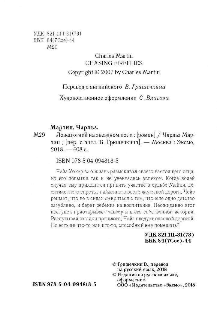 --Чарльз Мартин: Ловец огней на звездном полеРусская классическая и современная литератураЗарубежная художественная литератураРусская художественная литератураФэнтезиДраматургияПоэзияПриключенияФантастикаЭпос и фольклорКлассическая прозаАфоризмыИсторическая прозаДетективыБасниСентиментальная прозаОтечественный боевикСовременная прозаМолодежная литератураЗарубежная классическая и современная литература