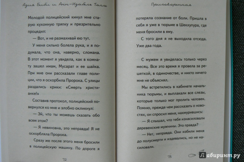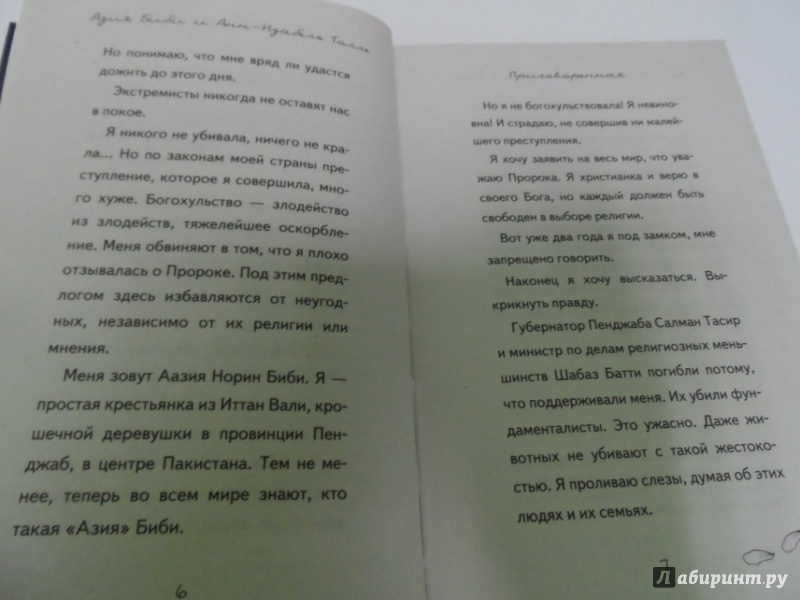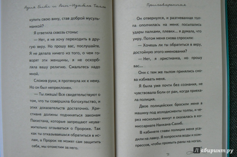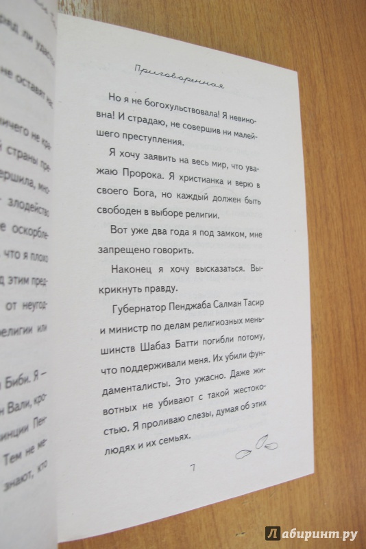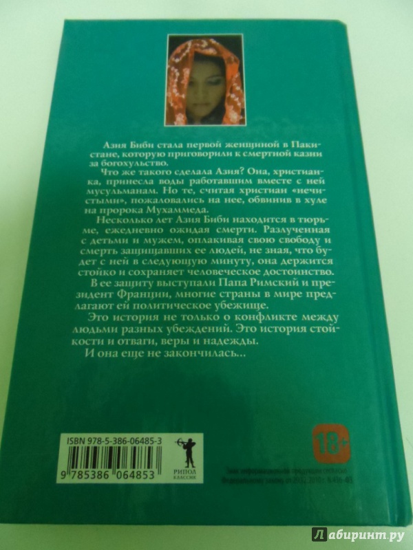 ОписаниеАзия Биби стала первой женщиной в Пакистане, которую приговорили к смертной казни за богохульство. Что же такого сделала Азия? Она, христианка, принесла воды работавшим вместе с ней мусульманам. Но те, считая христиан <нечистыми>, пожаловались на нее, обвинив в хуле на пророка Мухаммеда. Несколько лет Азия Биби находится в тюрьме, ежедневно ожидая смерти. Разлученная с детьми и мужем, оплакивая свою свободу и смерть защищавших ее людей, не зная, что будет с ней в следующую минуту, она держится стойко и сохраняет человеческое достоинство. В ее защиту выступали Папа Римский и президент Франции, многие страны в мире предлагают ей политическое убежище.Это история не только о конфликте между людьми разных убеждений. Это история стойкости и отваги, веры и надежды.И она еще не закончилась…Азия Биби стала первой женщиной в Пакистане, которую приговорили к смертной казни за богохульство. Что же такого сделала Азия? Она, христианка, принесла воды работавшим вместе с ней мусульманам. Но те, считая христиан <нечистыми>, пожаловались на нее, обвинив в хуле на пророка Мухаммеда. Несколько лет Азия Биби находится в тюрьме, ежедневно ожидая смерти. Разлученная с детьми и мужем, оплакивая свою свободу и смерть защищавших ее людей, не зная, что будет с ней в следующую минуту, она держится стойко и сохраняет человеческое достоинство. В ее защиту выступали Папа Римский и президент Франции, многие страны в мире предлагают ей политическое убежище.Это история не только о конфликте между людьми разных убеждений. Это история стойкости и отваги, веры и надежды.И она еще не закончилась…