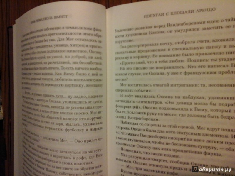 Описание"Просто знай, что я тебя люблю. Подпись: ты угадаешь кто".Спокойствие утонченного, изысканного, благопристойного района Брюсселя жестоко нарушено. Анонимка спровоцировала глубокие разочарования и жестокие надежды, пустые обещания и непоправимые беды. Порочный круг страстей, необузданных желаний и пылающих чувств в романе о несокрушимой силе любви.Эрик-Эмманюэль Шмитт - философ и исследователь человеческой души, писатель и кинорежиссер, один из самых успешных европейских драматургов, человек, который в своих книгах "Евангелие от Пилата", "Секта эгоистов", "Оскар и Розовая Дама", "Ибрагим и цветы Корана", "Женщина в зеркале" задавал вопросы Богу и Понтию Пилату, Будде и Магомету, Фрейду и Моцарту.В своем новом романе "Попугаи с площади Ареццо" он задает вопрос самому себе: что есть любовь? "Если сколько голов, столько умов, то и сколько сердец, столько родов любви", - задумчиво некогда произнесла Анна Каренина. Эрик-Эмманюэль Шмитт разворачивает перед изумленным и заинтригованным читателем целый любовный сериал как раз про то, "сколько родов любви", доводя каждый микросюжет до своей кульминации. Как бы то ни было, оторваться от чтения невозможно."Эрик-Эмманюэль Шмитт поражает наше воображение замечательной летописью одного маленького района в Брюселле".Madame Figaro"Этот красивый, ироничный роман ставит перед читателем вопрос: что есть любовь - возможность или преграда? Ответ у каждого будет свой".L'Express- Эрик-Эмманюэль Шмитт входит в Топ-10 самых продаваемых авторов Франции наряду с Марком Леви, Анной Гавальда и Гийомом Мюссо.- Шмитт - лауреат Гонкуровской премии 2010 года.- Посвящен в рыцари Ордена искусств и литературы (высокая государственная награда Франции).- Лауреат Гран-при театрального искусства Французской Академии.- Пьесы Шмитта переведены на сорок с лишним языков и поставлены в 50 странах мира, в том числе и в России.- С 9 по 14 ноября в Санкт-Петербурге пройдет фестиваль, полностью посвященный творчеству Шмитта. На различных театральных и концертных площадках пройдут спектакли, концерты и кинопоказы, а также встречи с автором и автографсессии.Свернуть"Просто знай, что я тебя люблю. Подпись: ты угадаешь кто".Спокойствие утонченного, изысканного, благопристойного района Брюсселя жестоко нарушено. Анонимка спровоцировала глубокие разочарования и жестокие надежды, пустые обещания и непоправимые беды. Порочный круг страстей, необузданных желаний и пылающих чувств в романе о несокрушимой силе любви.Эрик-Эмманюэль Шмитт - философ и исследователь человеческой души, писатель и кинорежиссер, один из самых успешных европейских драматургов, человек, который в своих книгах "Евангелие от Пилата", "Секта эгоистов", "Оскар и Розовая Дама", "Ибрагим и цветы Корана", "Женщина в зеркале" задавал вопросы Богу и Понтию Пилату, Будде и Магомету, Фрейду и Моцарту.В своем новом романе "Попугаи с площади Ареццо" он задает вопрос самому себе: что есть любовь? "Если сколько голов, столько умов, то и сколько сердец, столько родов любви", - задумчиво некогда произнесла Анна Каренина. Эрик-Эмманюэль Шмитт разворачивает перед изумленным и заинтригованным читателем целый любовный сериал как раз про то, "сколько родов любви", доводя каждый микросюжет до своей кульминации. Как бы то ни было, оторваться от чтения невозможно."Эрик-Эмманюэль Шмитт поражает наше вообр