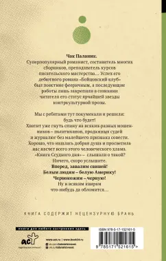 Чак Паланик — один из самых популярных писателей современности. Суммарный тираж его романа «Бойцовский клуб» только в России за последние 10 лет превышает 1 000 000 экземпляров! -