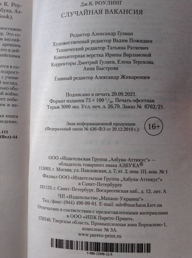 Объем, стр. 576 ISBN 978-5-389-20970-1 Автор Роулинг Джоан Кэтлин, Петрова Елена Переводчик Петрова Елена Серия Большой роман Язык Русский Минимальный возраст 16+ Год издания книги 2022 Тип обложки Твердый переплет Иллюстрации Без иллюстраций Вес, г 664г Размеры 217х152х29 мм - Отзывы