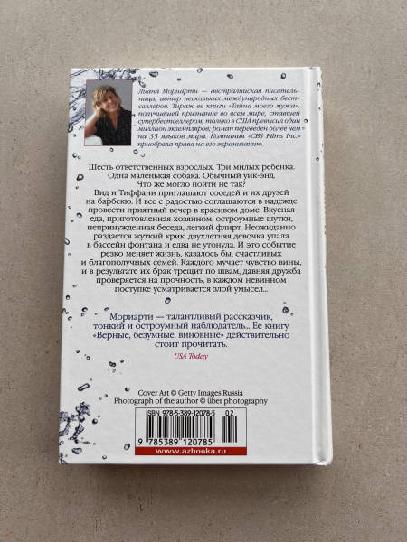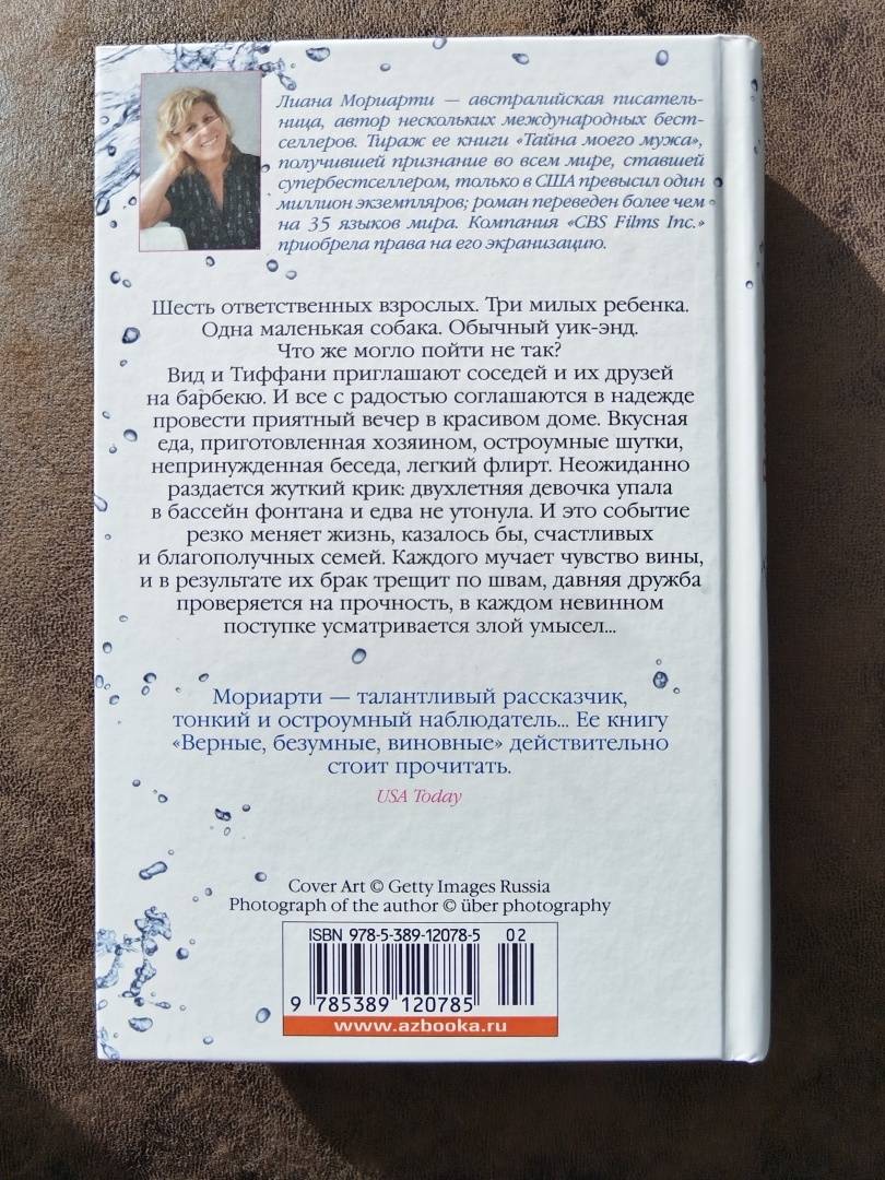 ОписаниеШесть ответственных взрослых. Три милых ребенка. Одна маленькая собака. Обычный уик-энд. Что же могло пойти не так?Вид и Тиффани приглашают соседей и их друзей на барбекю. И все с радостью соглашаются в надежде провести приятный вечер в красивом доме. Вкусная еда, приготовленная хозяином, остроумные шутки, непринужденная беседа, легкий флирт. Неожиданно раздается жуткий крик: двухлетняя девочка упала в бассейн фонтана и едва не утонула. И это событие резко меняет жизнь, казалось бы, счастливых и благополучных семей. Каждого мучает чувство вины, и в результате их брак трещит по швам, давняя дружба проверяется на прочность, в каждом невинном поступке усматривается злой умысел...Впервые на русском языке!Шесть ответственных взрослых. Три милых ребенка. Одна маленькая собака. Обычный уик-энд. Что же могло пойти не так?Вид и Тиффани приглашают соседей и их друзей на барбекю. И все с радостью соглашаются в надежде провести приятный вечер в красивом доме. Вкусная еда, приготовленная хозяином, остроумные шутки, непринужденная беседа, легкий флирт. Неожиданно раздается жуткий крик: двухлетняя девочка упала в бассейн фонтана и едва не утонула. И это событие резко меняет жизнь, казалось бы, счастливых и благополучных семей. Каждого мучает чувство вины, и в результате их брак трещит по швам, давняя дружба проверяется на прочность, в каждом невинном поступке усматривается злой умысел...Впервые на русском языке!