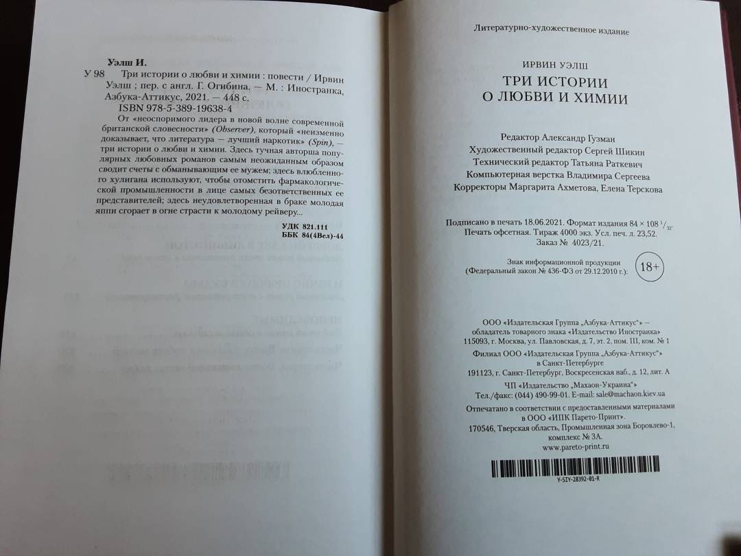 Объем, стр. 448 ISBN 978-5-389-19638-4 Автор Уэлш Ирвин, Огибин Г. Переводчик Огибин Г. Серия Уэлш Ирвин Язык Русский Минимальный возраст 18+ Год издания книги 2021 Тип обложки Твердый переплет Иллюстрации Без иллюстраций Вес, г 490г Размеры 210х140х25 мм - Отзывы
