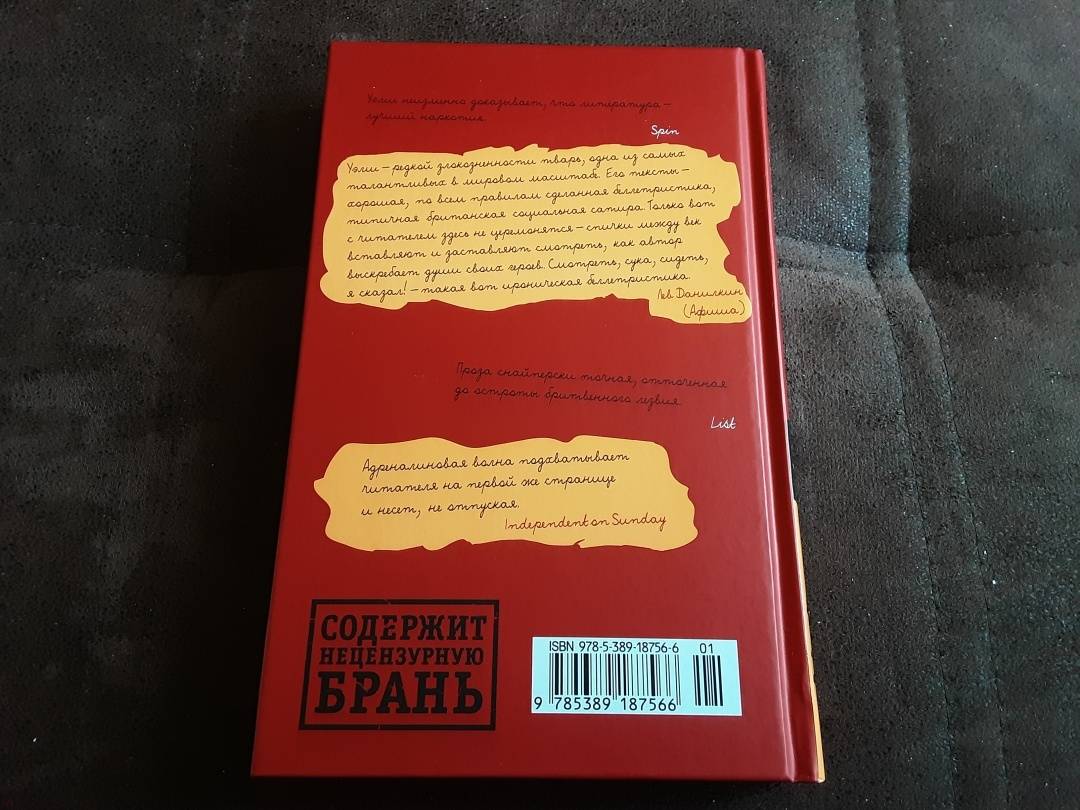 Объем, стр. 448 ISBN 978-5-389-18756-6 Автор Уэлш Ирвин, Шер Максим Переводчик Шер Максим Серия Уэлш Ирвин Язык Русский Минимальный возраст 18+ Год издания книги 2021 Тип обложки Твердый переплет Иллюстрации Без иллюстраций Вес, г 506г Размеры 208х135х26 мм - Отзывы